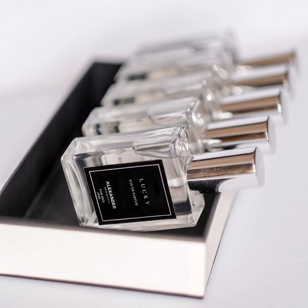 ALEXANDER FRAGRANCE is created to provide a wide variety of quality fragrances and bring the luxury experience closer to  Filipino consumers. Through its quality, elegant, and long-lasting yet affordable fragrances, you will be able to create a unique identity the world could remember.   Eau De Parfum grade, Quality Fragrance Locally made and Hand-crafted in Bulacan  Long-lasting fragrance. Plant-based. All-Natural. Natural Color. Doesn't Stain Clothes.   Ingredients: Sugarcane Extract (Alcohol), Dipropylene Glycol, Parfum(fragrance)/Essential Oils, Water Conquer - A nice, safe and unique scent. Light woody, musky and fruity.  Bachelor - Fruity, fresh, green, woody, patchouli with notes of apple, patchouli, pine tree & vetiver. Lucky - Citrus aromatic fragrance for men with notes of mandarin orange, lemon, aquatic, lily of the valley, cedar. Invincible - Fresh aquatic summer scent. Notes of grapefruit, lemon, marine notes, ambergris and woody amber. Inspired by the athletic spirit, competition and victory. Dominant - A classic masculine scent perfect for those who enjoy fresh and  spicy fragrances. Ocean Drive - The perfect day time perfume! Sporty, fresh, clean and white fragrance with notes of grapefruit, cardamom, suede , and leather