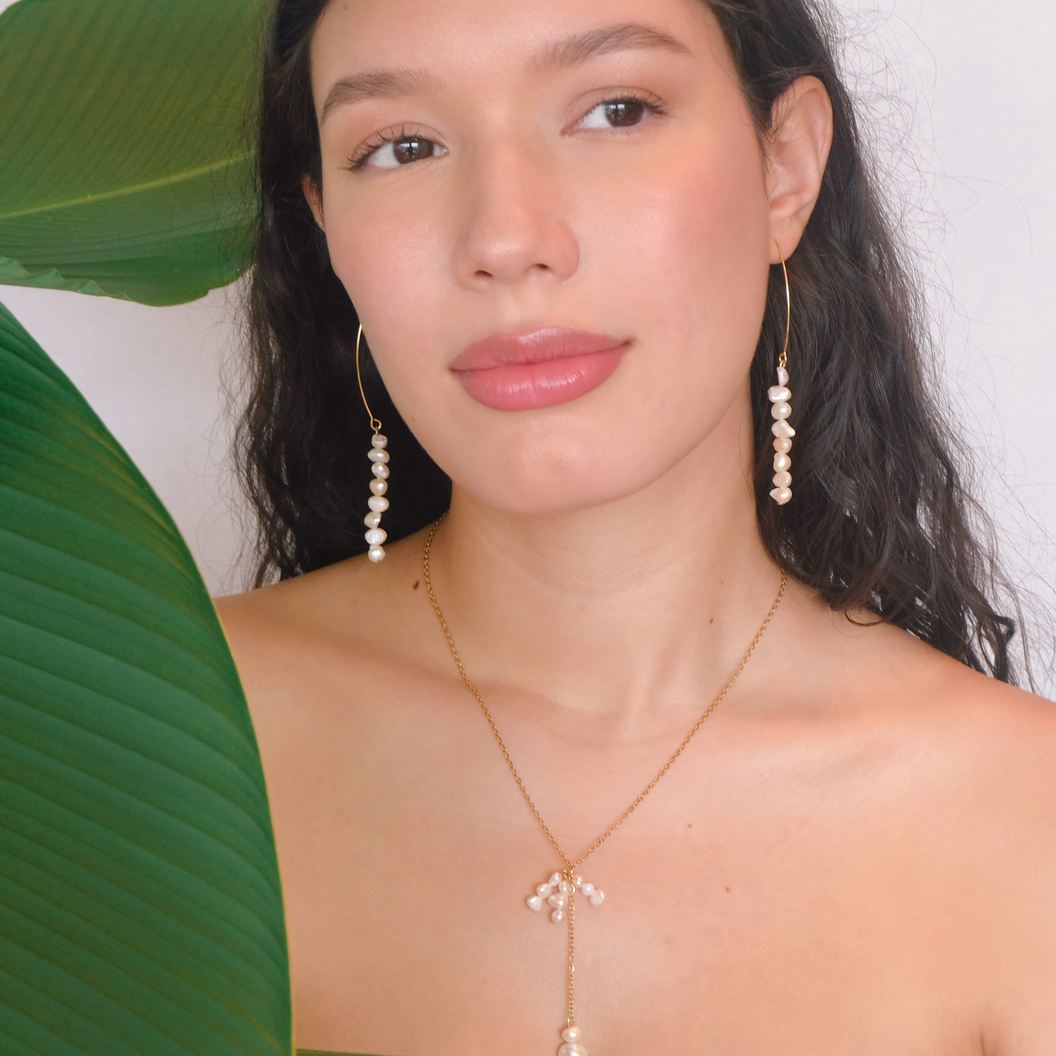 Handmade baroque pearl threader earringsComponentsstainless steel gold-plated hardwaresouth sea pearlsDimensions3.5 inches in lengthLightweightDue to the handmade nature of our earrings, color, lengths and sizes may vary but very minimal. Note: Pearls are baroque- naturally irregularly shaped and may not exactly match as a pair. Expect differences in shape, texture, coloration and size.