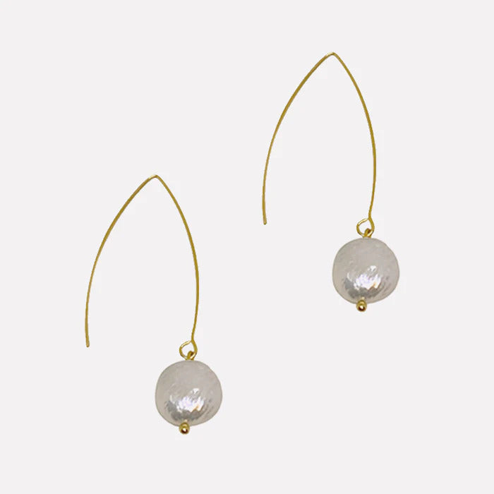 Handmade baroque pearl threader earringsComponentsstainless steel gold-plated hardwaresouth sea pearlsDimensions2 inches in lengthLightweightDue to the handmade nature of our earrings, lengths and sizes may vary but very minimal. Note: Pearls are baroque- naturally irregularly shaped and may not exactly match as a pair. Expect differences in shape, texture, coloration and size.