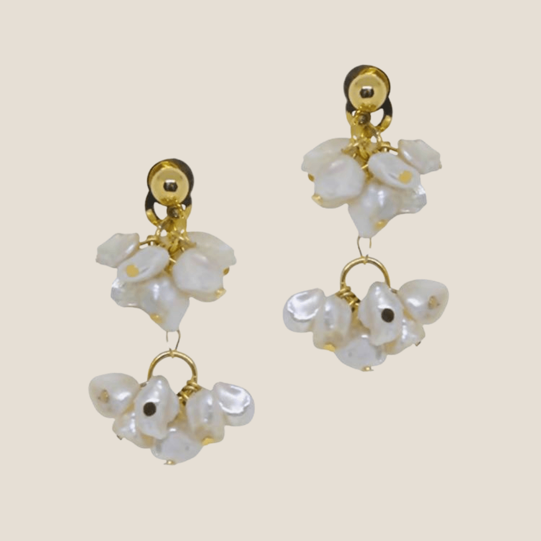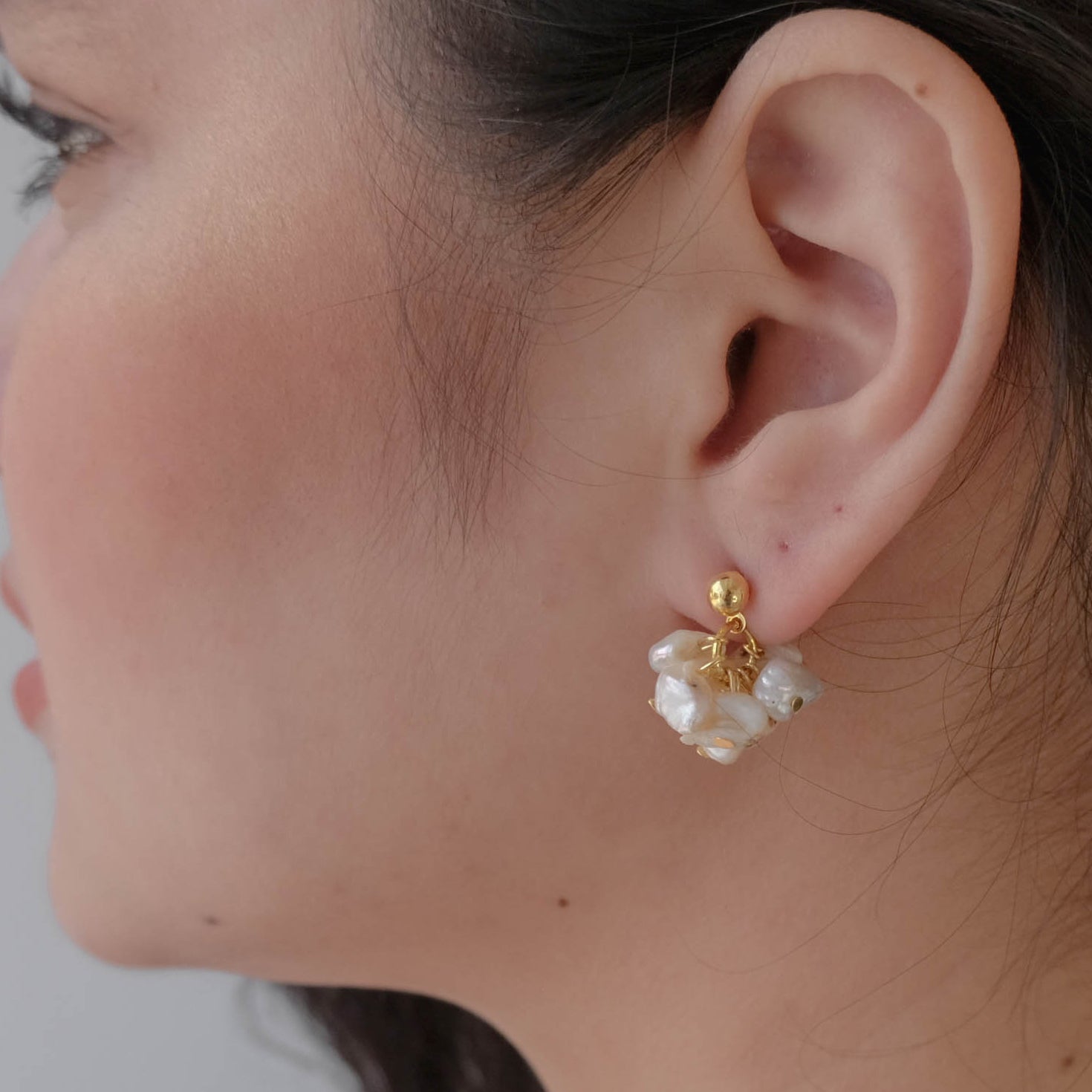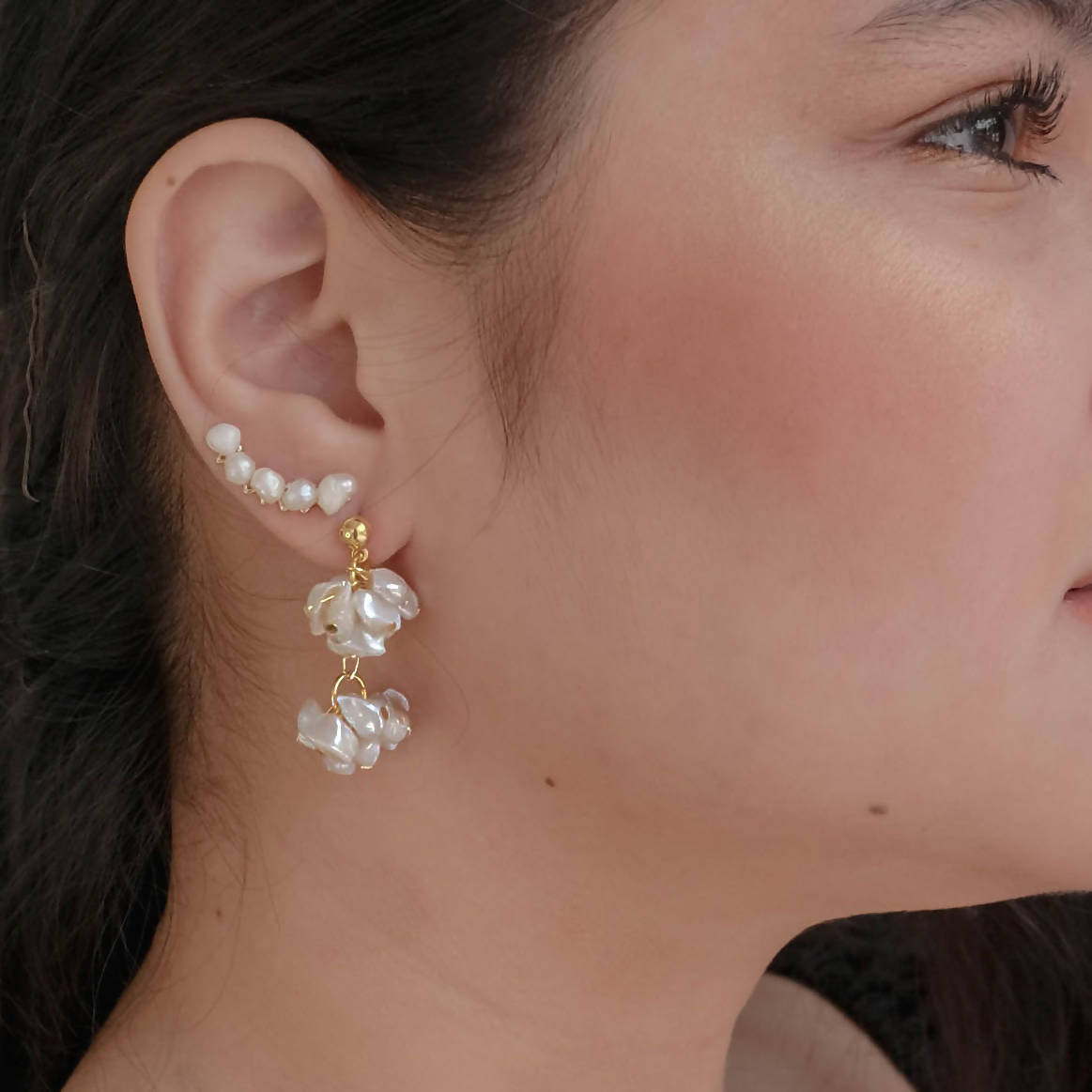 Baroque pearl two-way earringsComponentsGold-plated hardwareSouth sea pearlsDimensionsStud: 0.75 inches in lengthDrop: 1.5 inches in lengthLightweightDue to the handmade nature of our earrings, color, lengths and sizes may vary but very minimal.Note: Pearls are baroque- naturally irregularly shaped and do not exactly match as a pair. Expect differences in shape, texture, coloration and size.