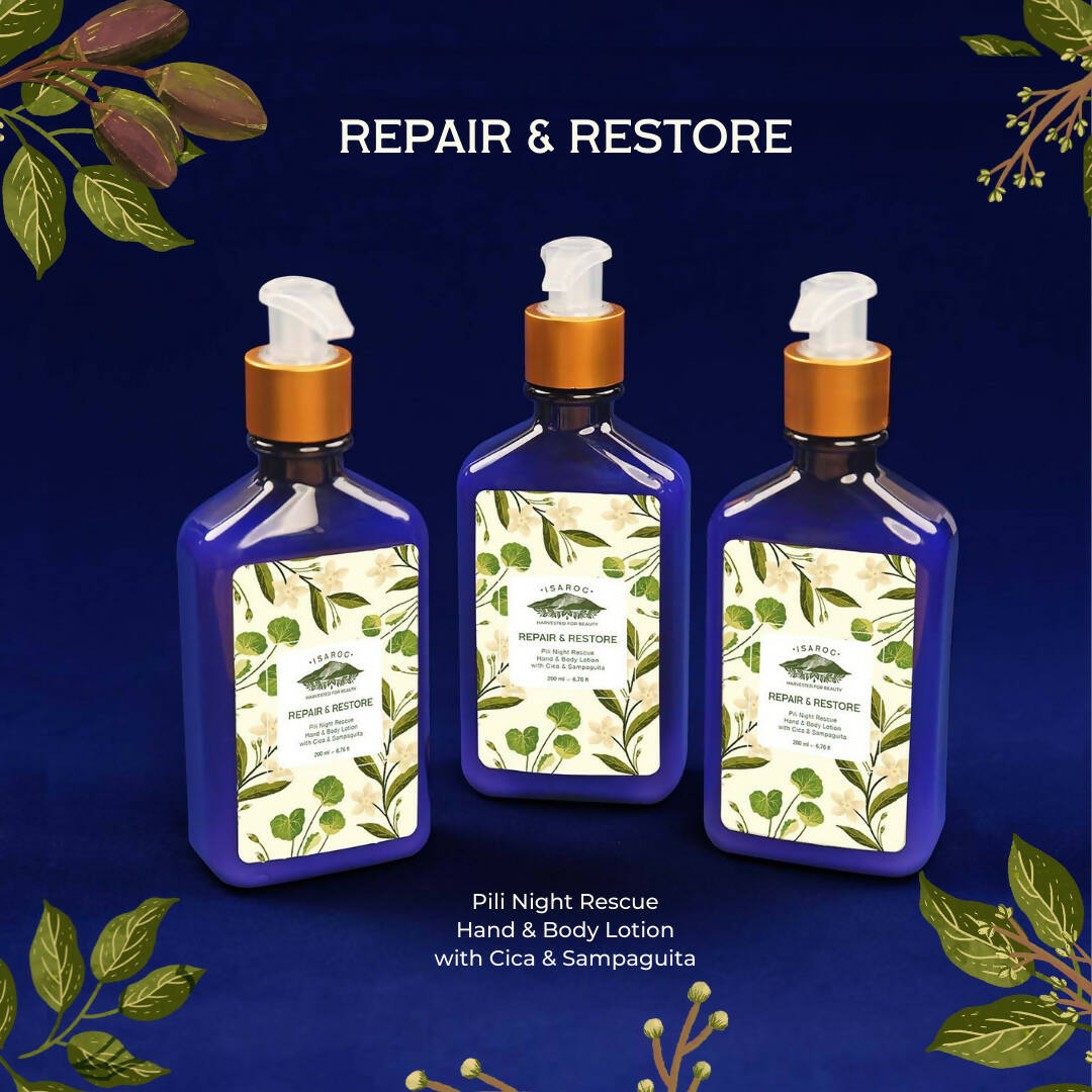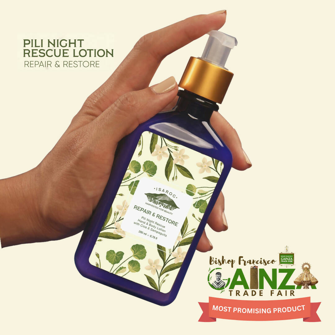 Pili Night Rescue Hand and Body Lotion with Cica & Sampaguita Extracts to repair, rebalance, and restore your skin.