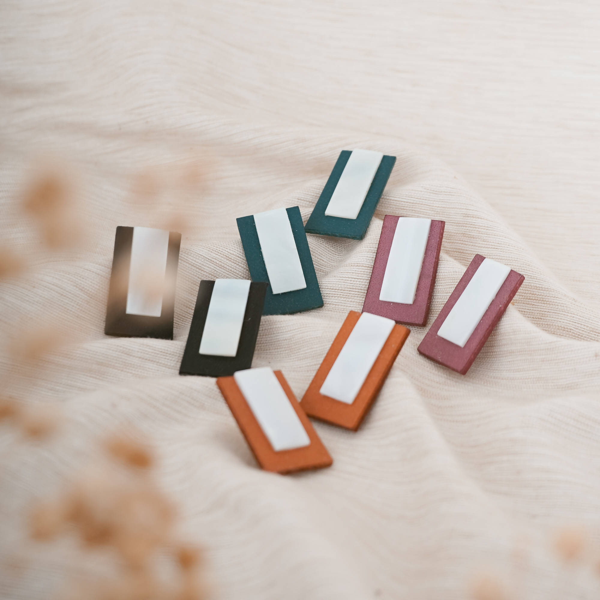 • To protect your ears from direct contact with the leather, a capiz shell is attached at the back of the earrings