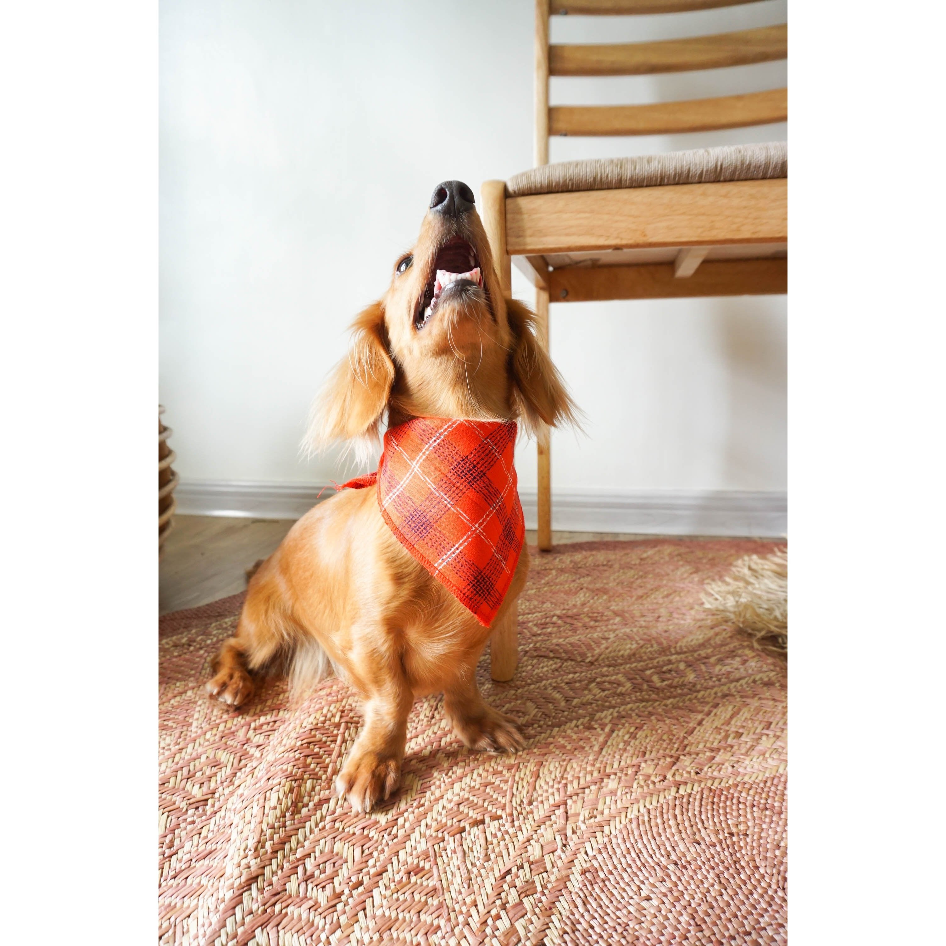 Give your pup a more laid back look with these plaid pet bandanas! Available in size small.