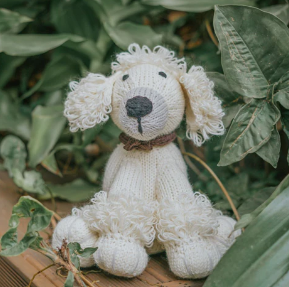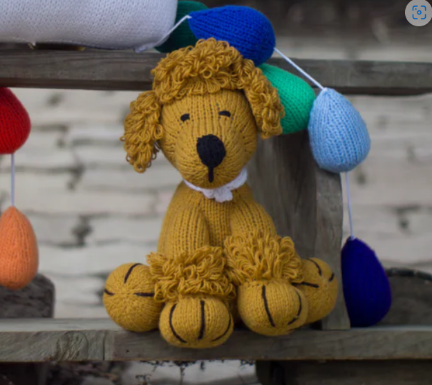 Each puppy measures approximately 12 inches tall, and around 7 inches long.  Do remember, that each hand knit item is unique and sizes may vary slightly.