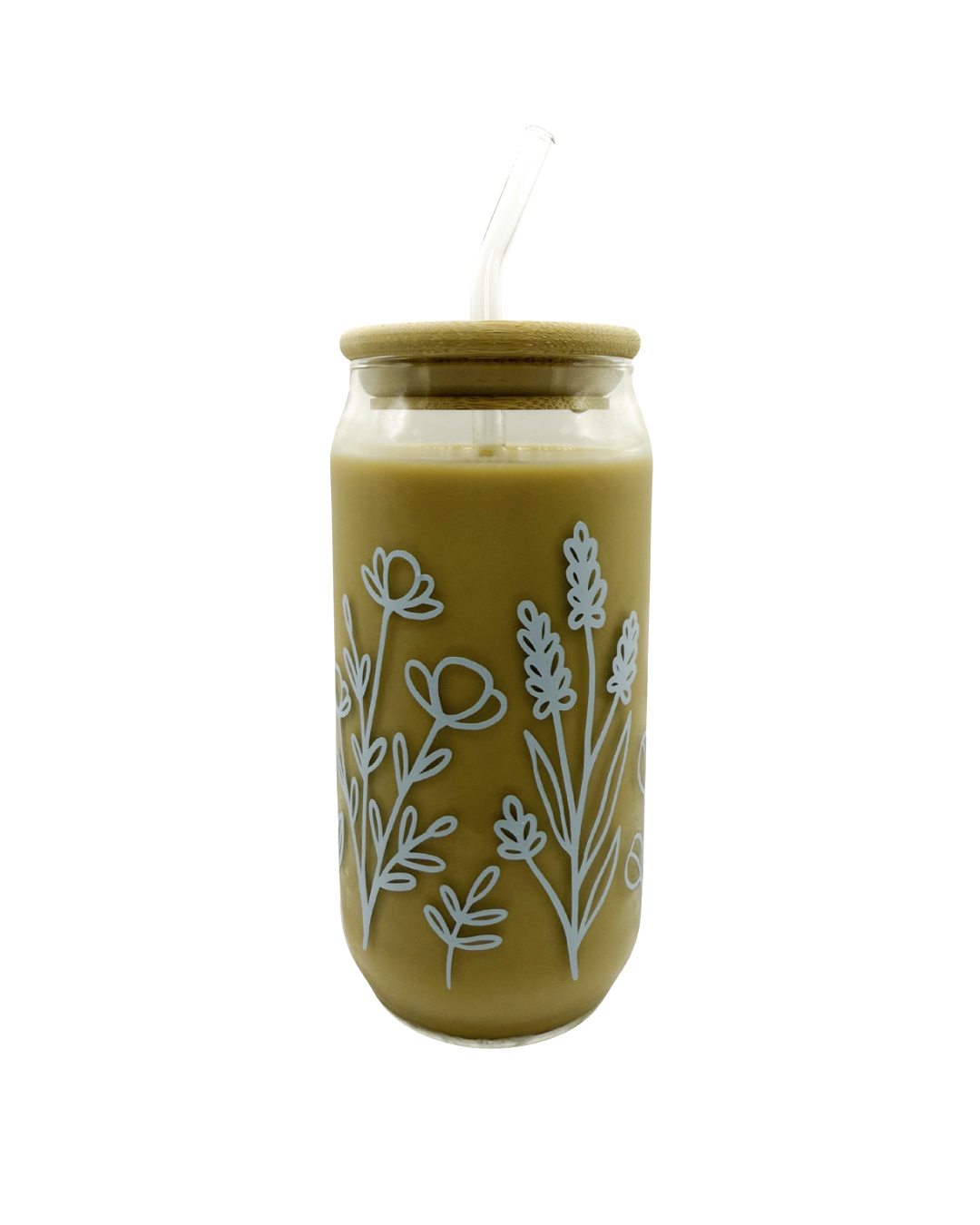 Add charm to your sips with our Posies glass cup collection. The cup features a delicate botanical design made from premium cut vinyl, giving it a handmade artisanal touch.