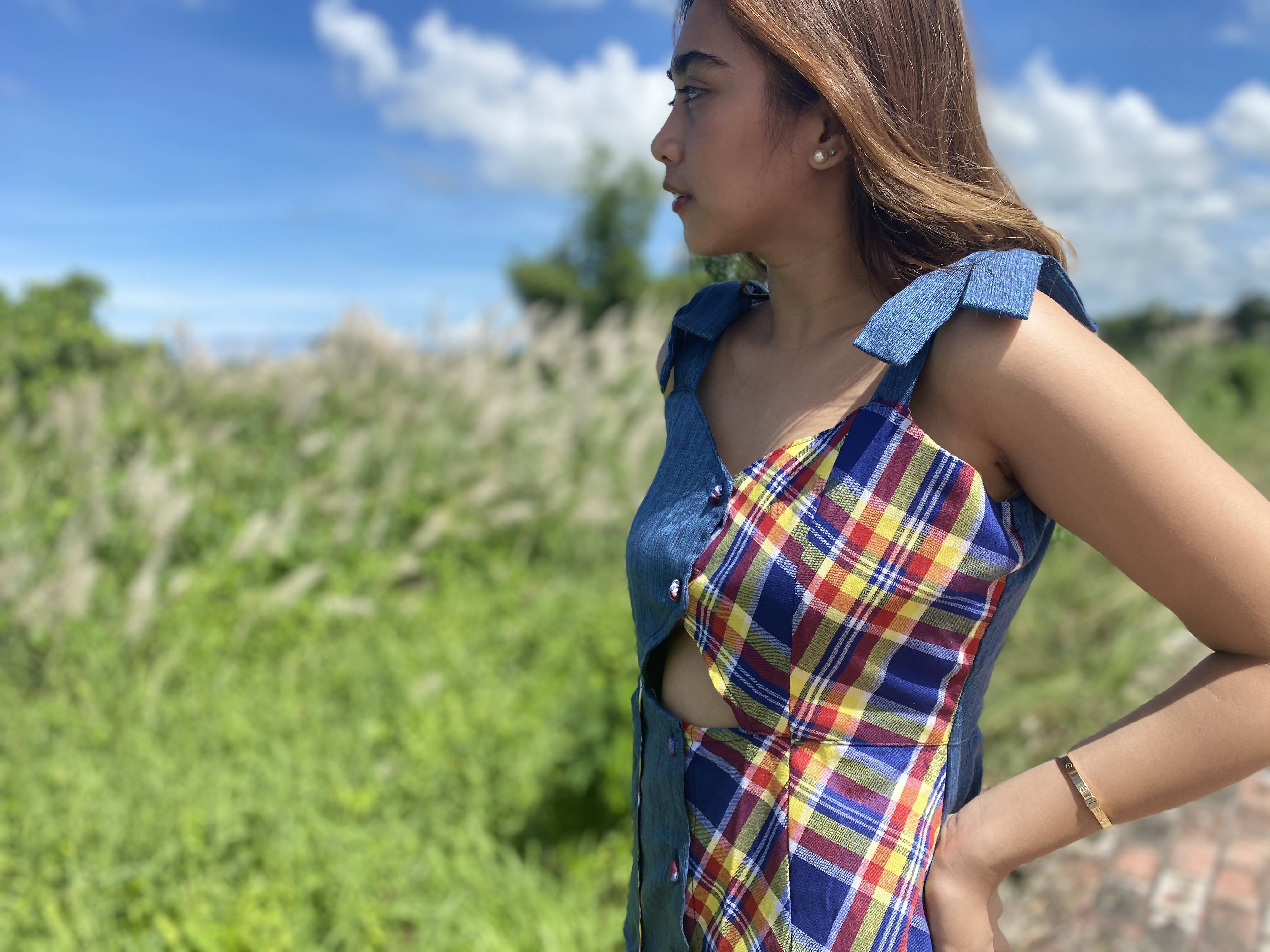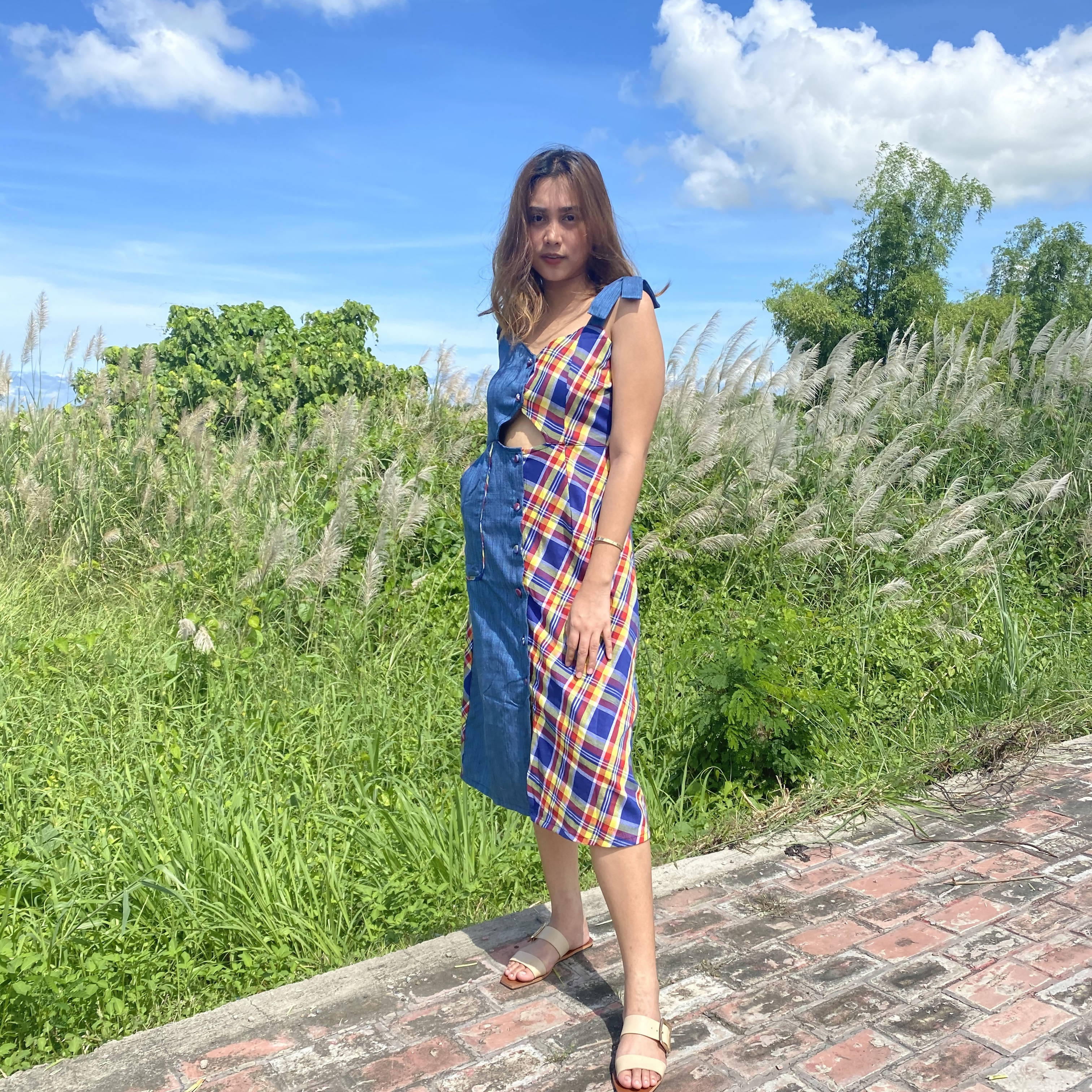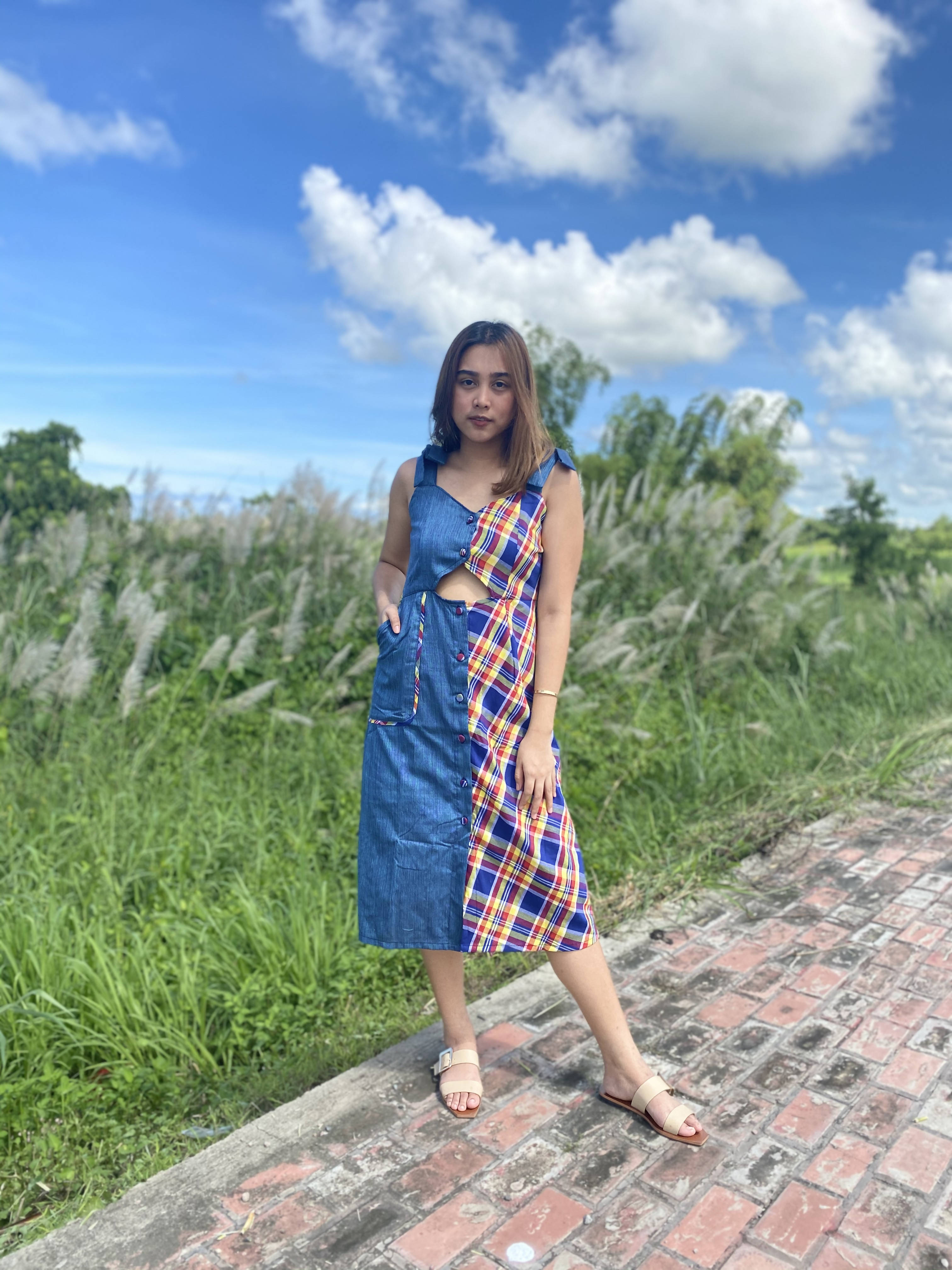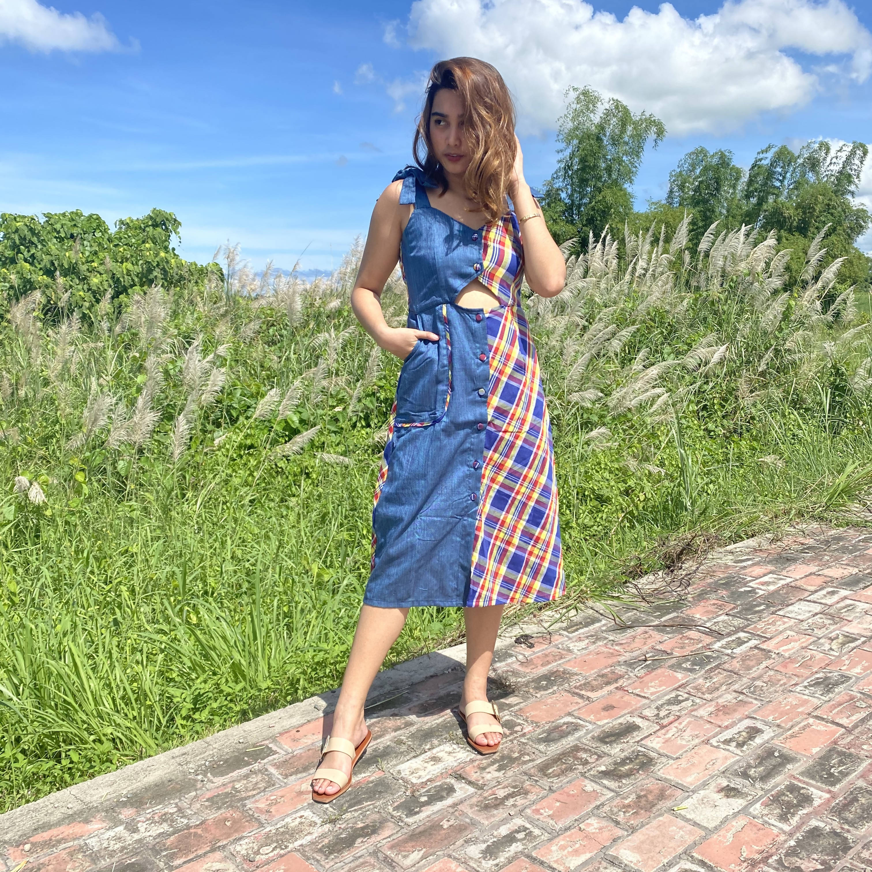 Hello, Prashana dresses the fabric that never gets out of style, Vida Hayes designed a simple asymmetrical cut yet perfect combination of plaid and upcycled shades of blue threads.  Weavers from the Negros Island Philippines, loom by hand using their unique technique in plaid and plain fabric. Like this inspiration, Prashana cool as ever.