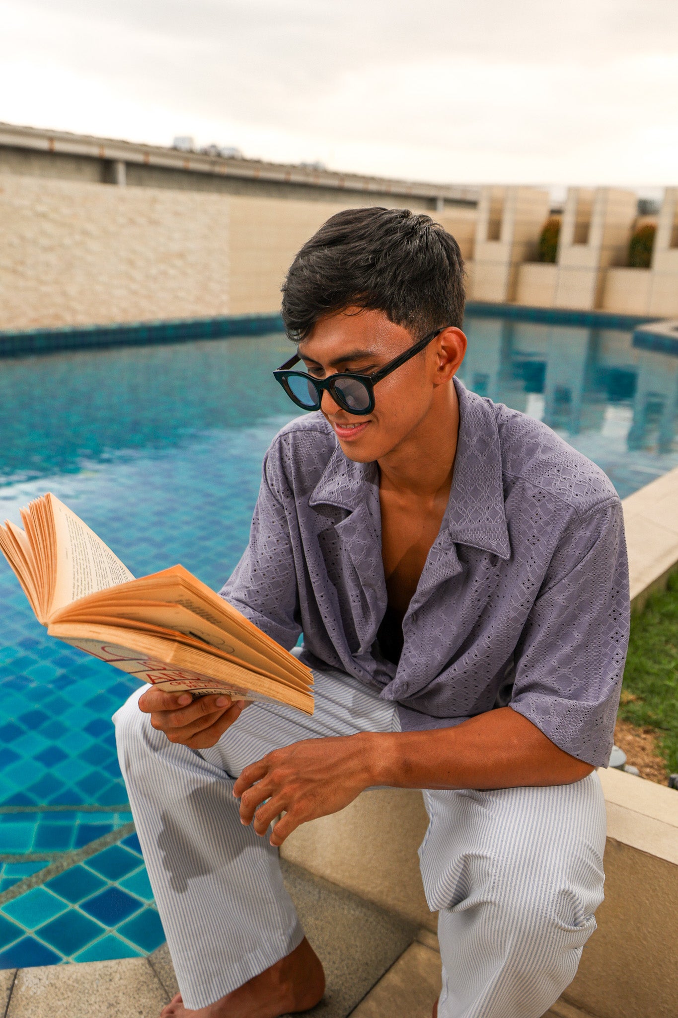 Premium Anglaise Cuban Shirt | Azzuro