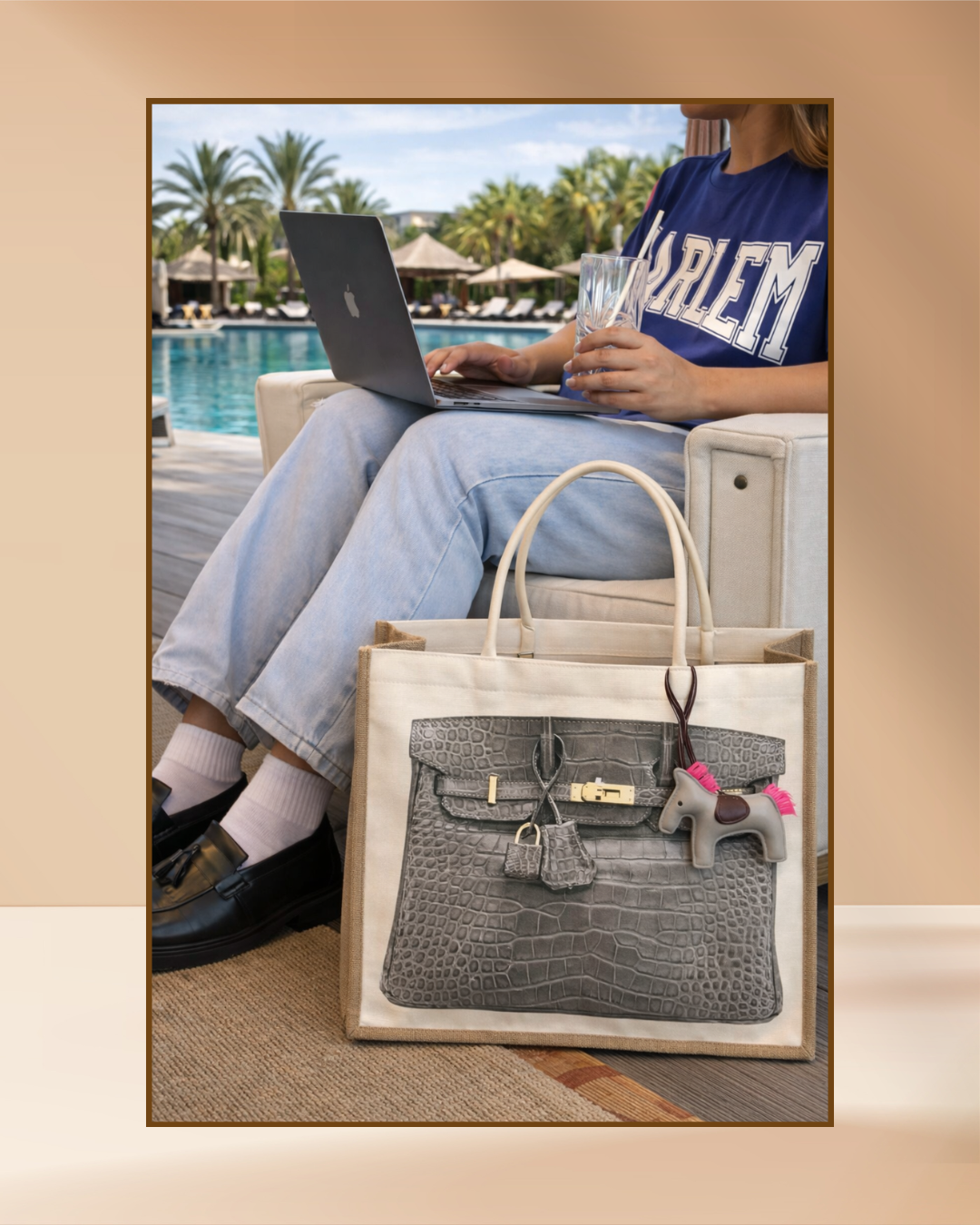 ·      Locally made and designed·      Both sides of the bag have design (front & back)·      Material: canvass and jute fiber·      Size: 42L x 18W x 34H cm·      Available in Blue Window, Green Croc, White Croc, and Gray Croc·      It comes with free Winged Charm