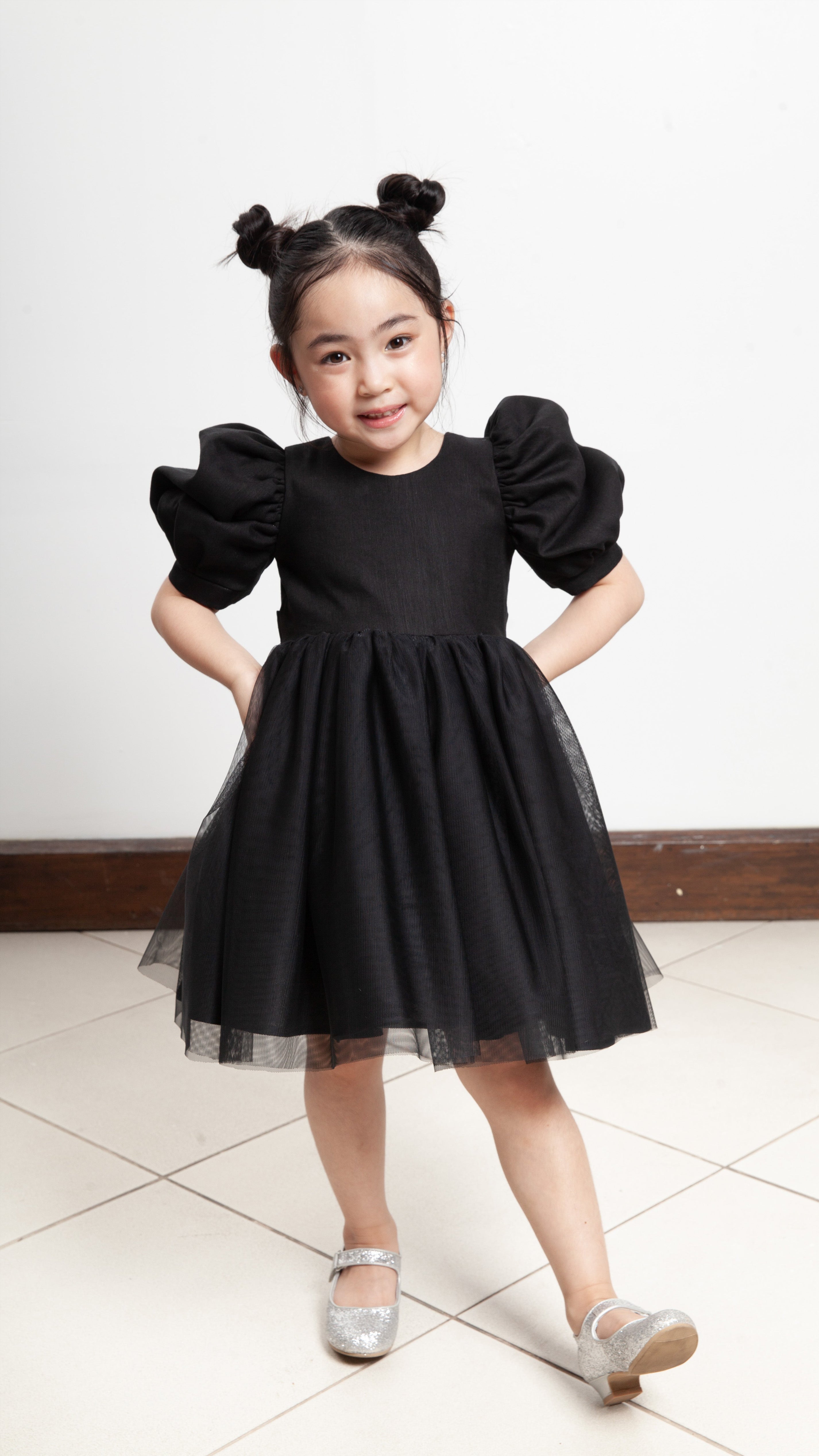 A classic Unaricci piece featuring puff sleeves and a below-the-knee balloon skirt in sage linen and layered tulle — a graceful blend of structure and whimsy.Size Chart: Age  Chest Waist Sh - Waist Hips Skirt Length 2-3yo 22" 20" 8 1/4" Free Size to follow 4-5yo 24" 22" 8 3/4" Free Size to follow 6-7yo 25" 22" 10" Free Size to follow 7-8yo 26" 24 1/2" 10" Free Size to follow 9-10yo 27 1/2" 24 1/2" 11" Free Size 20" 11-12yo 29 1/2" 27" 11 1/4" Free Size 20 3/4"