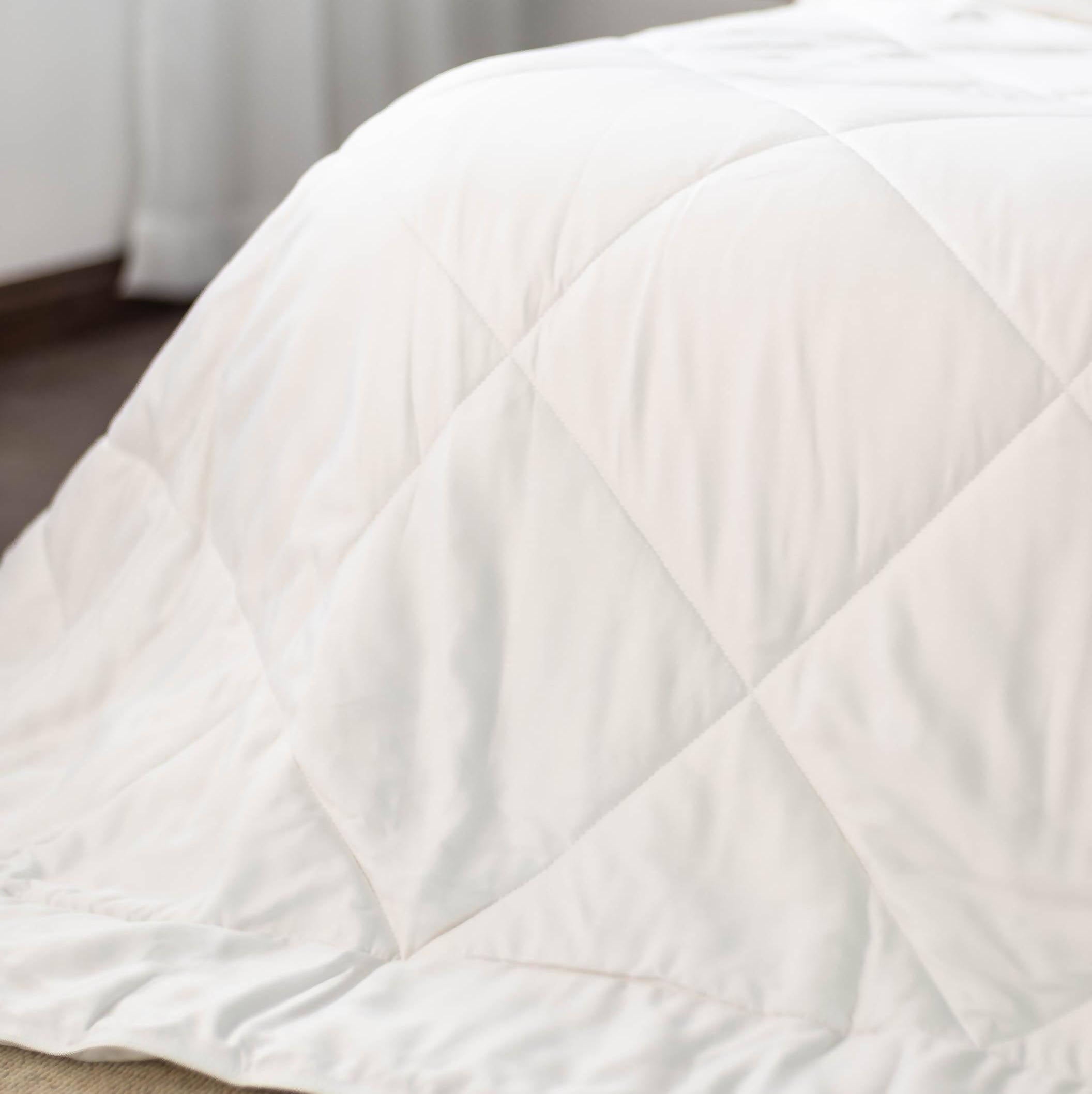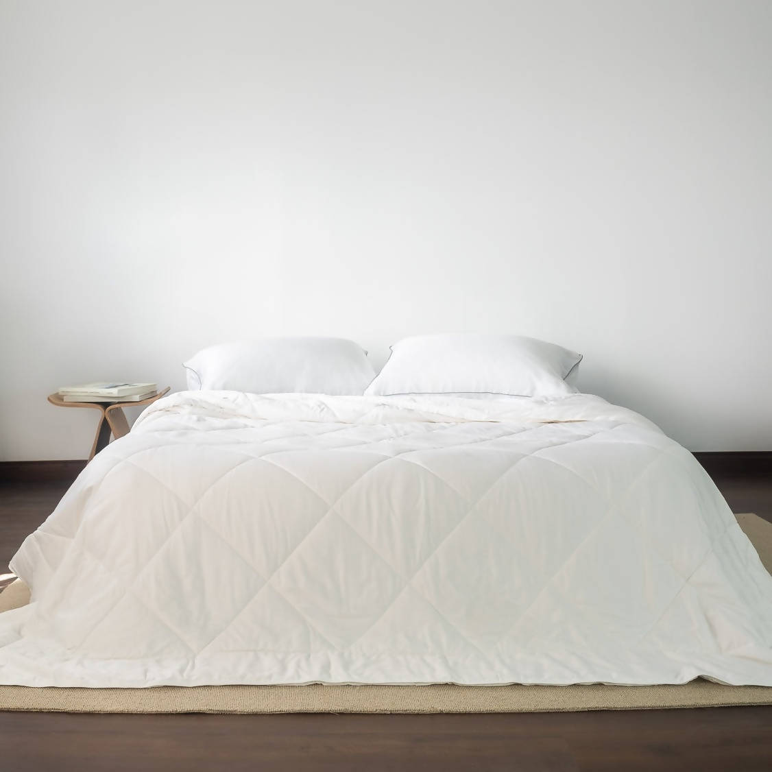 The softest cooling comforter you'll ever sleep with—cozy & breezy, never hot & stuffy. The Philippines' 1st and only duvet/comforter made with a buttery soft bamboo shell with bamboo fibers inside, it offers silky softness, max breathability and temperature regulation—to keep you cozy without feeling hot and stuffy year-round.  Cloud-like, machine washable filling. Filled with a heavenly combination of silky bamboo fibers and hypoallergenic microfiber to mimic the cloudlike down feeling minus clumping.  Hypoallergenic & naturally antimicrobial. Bamboo is naturally resistant to bed bugs, dust mites and other allergens. Perfect for those with sensitive skin. Material 100% Organic Bamboo in ivory white | 50% Organic Bamboo fiber + 50% Hypoallergenic Microfiber STANDARD 100 by OEKO-TEX® Certified — tested for 350+ harmful substances to textile manufacturing Spot clean or dry clean as needed. Best paired with our ultra-soft, cooling, and easy-to-use 100% Organic Bamboo Lyocell Duvet Cover. This saves you money on professional cleaning as well (just 1x/year if using a cover). Details Not too light nor too heavy, a weight that balances breathability and comfort. Perfect for both summer and rainy nights. Classic cross-stitch to keep fill in place Anchor loops for duvet cover to hook onto Piping edge for a clean, durable finish Includes 1 x duvet filler / comforter Reusable bag Size Chart (Width x Length x Depth) Twin 68" x 90" Full|Queen 86" x 90" King|Cali King 102" x 90"