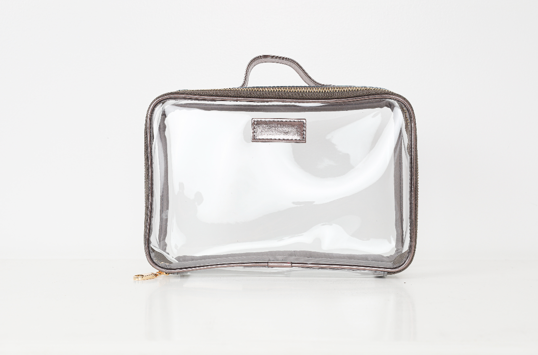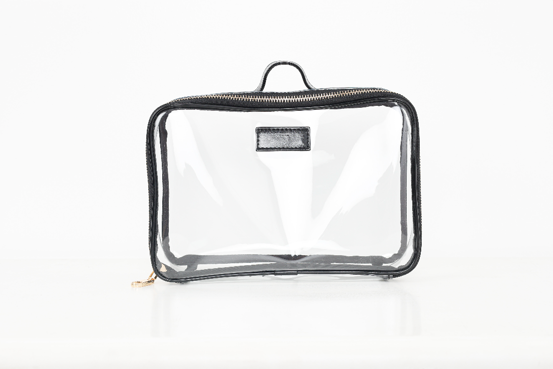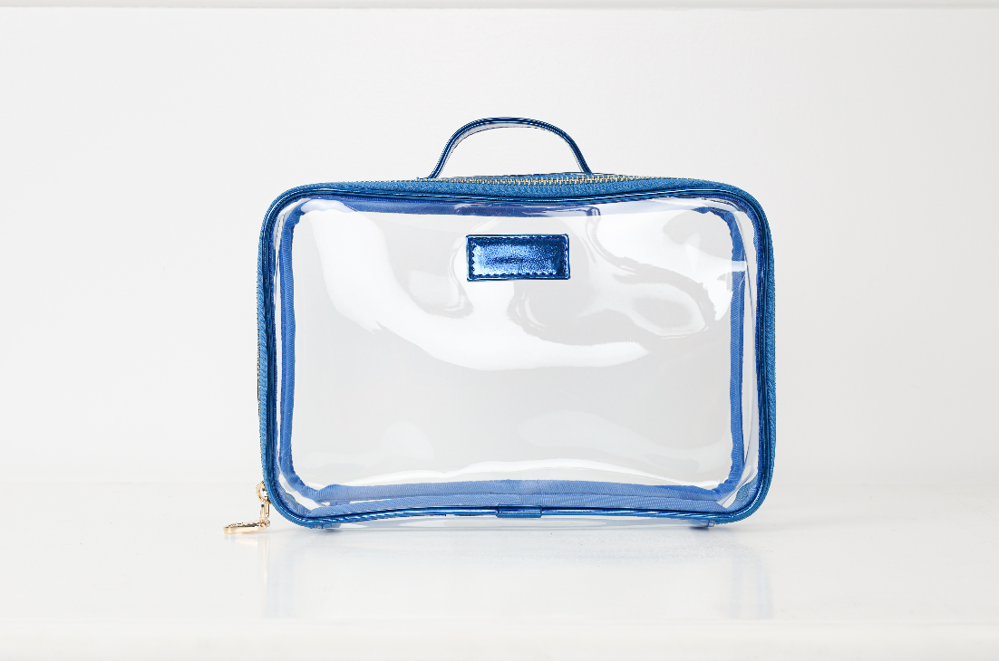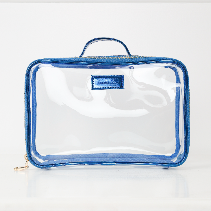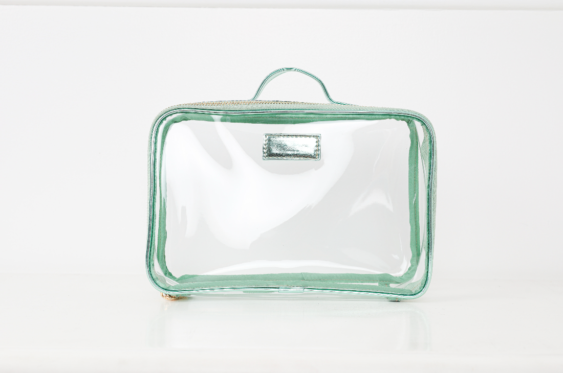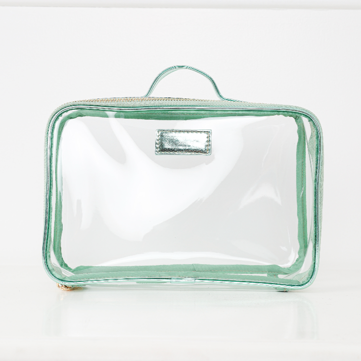 Features: Clear PVC body for quick visibility Glossy trim in vibrant shades Gold-tone zip closure with easy-pull tab Top handle for easy carrying Water-resistant and easy to wipe clean Dimension: L:26.5 x W:7.5 x H:18 in cm