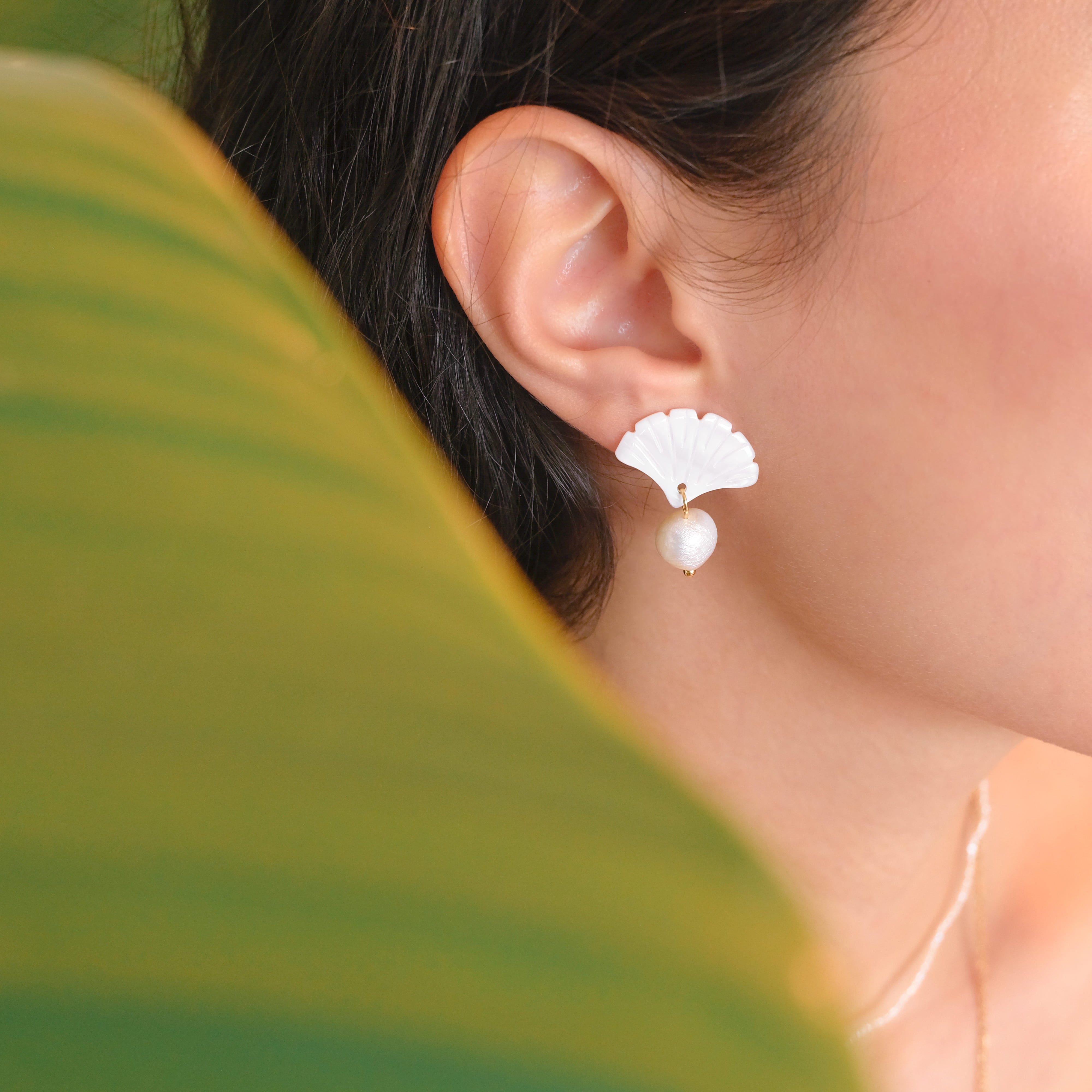 Handmade shell earringsComponentsstainless steel gold-plated hardwaremother of pearlDimensions1 inch in lengthLightweightDue to the handmade nature of our earrings, lengths and sizes may vary but very minimal.
