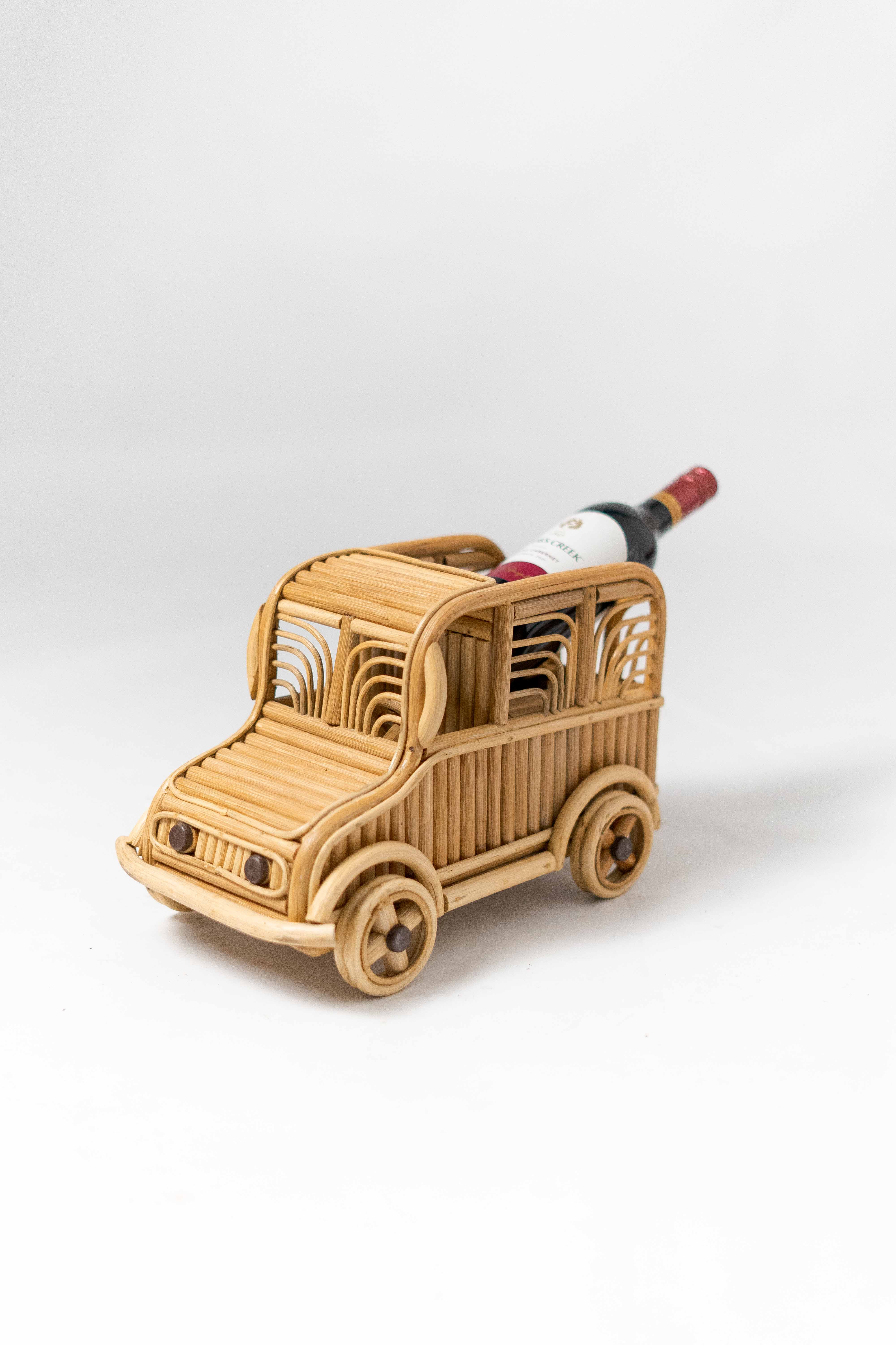 Description: The Rattan Jeepito is a versatile mini jeepney that’s more than just a decorative piece! Crafted from rattan and bamboo with colorful plastic accents, this charming replica brings a touch of Filipino culture to any space. Use it as a unique wine holder, a playful toy display, or a brochure holder—it’s designed to adapt to your style. And for little ones, it doubles as a fun, imaginative toy. The Jeepito is the perfect blend of traditional craftsmanship and modern functionality, making it a delightful addition to your home or office. Dimensions LWH in inches:16L X 9W X 10H INMaterials: Bamboo, Buri IIT, Rattan and WoodColor: NaturalMade in Laoac Pangasinan, Philippines