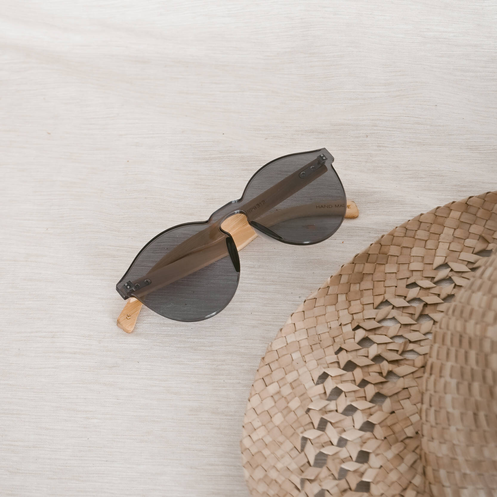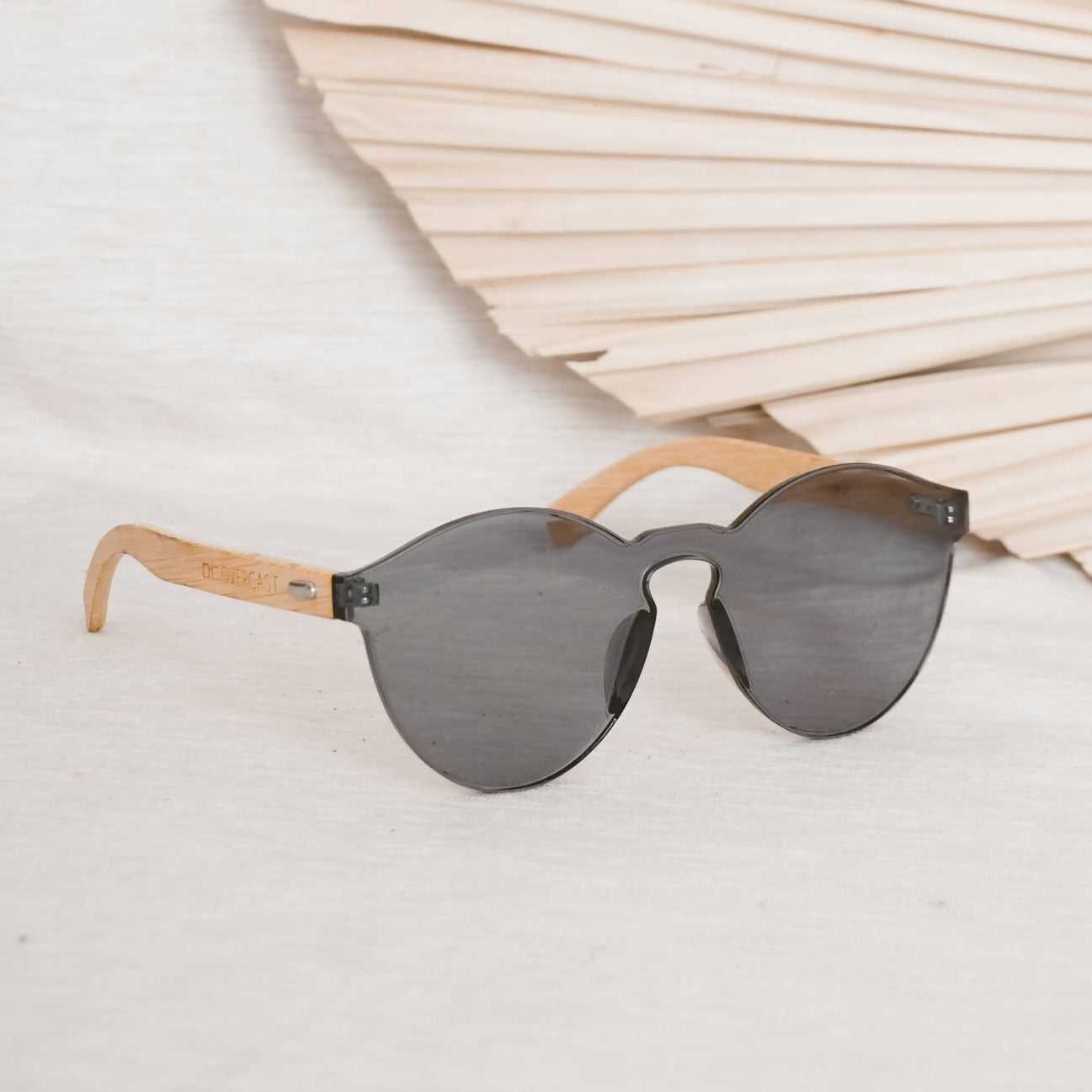 FEATURESMade from polycarbonate featuring smoke lenses with built-in UV protection, a key hole bridge and sustainably sourced bamboo templesSIZELens - 57mm | Bridge - 20mm | Temple - 142mm