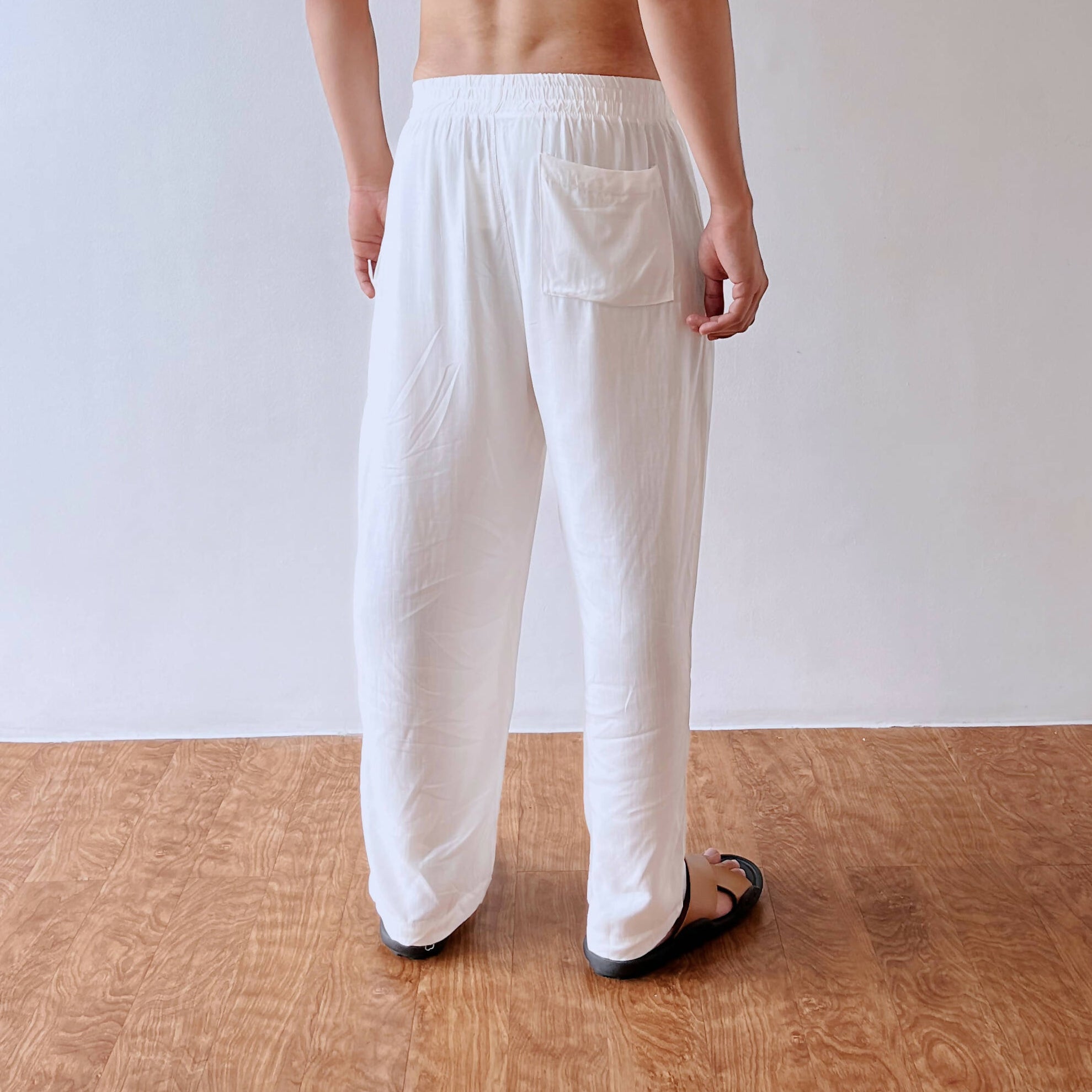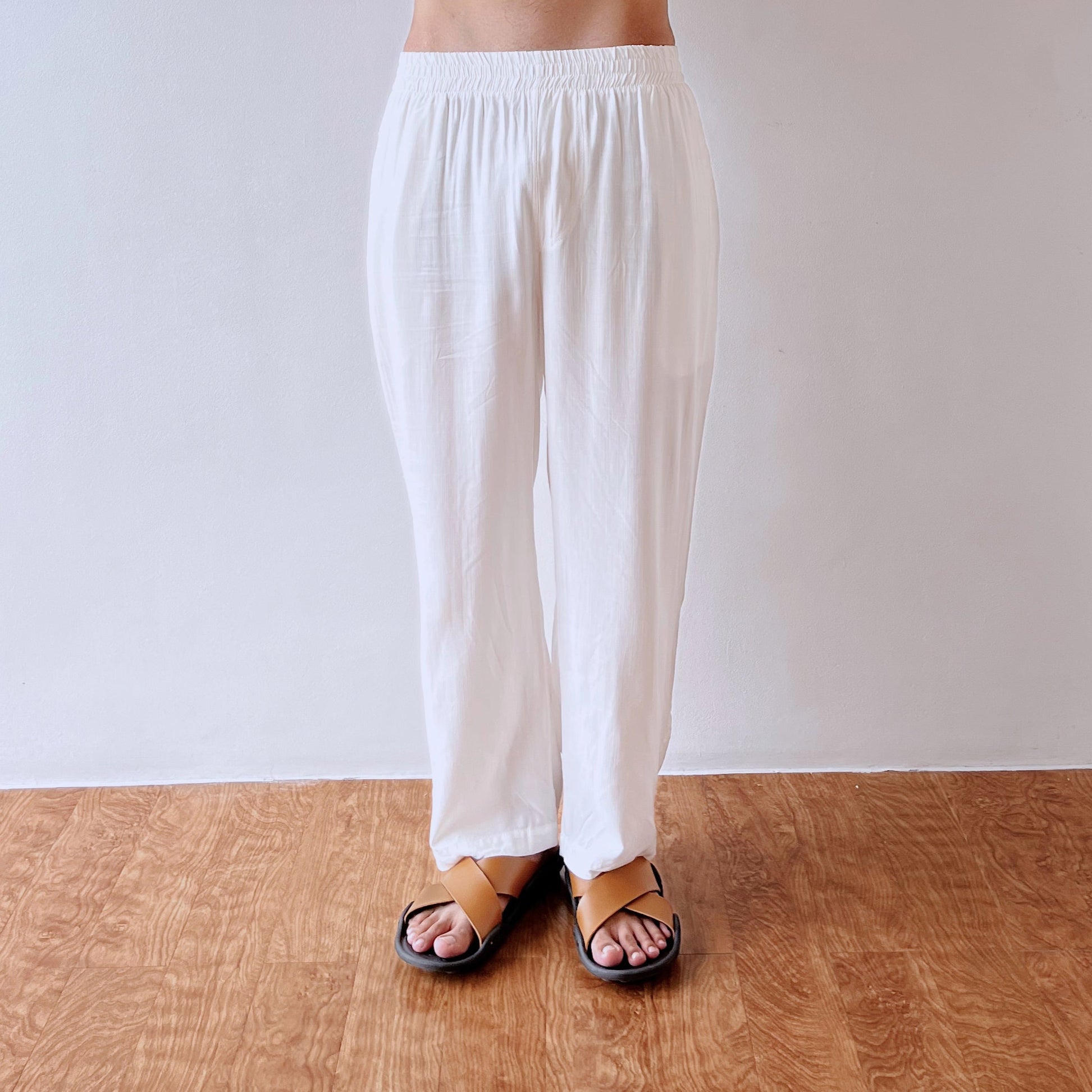 SUMMER23 Introducing the newest addition to our collections ~ RAYNEN CO-ORDS Pants  - Sold separately Made from 50% linen 50% rayon fabric, best match and blend for that softer yet sturdy quality feels for perfect lounging and outfit in the tropics Unisex / Genderless  Breathable, stretchable and very soft Classy and super comfy to wear  With side pockets and 1 back pocket  SIZING One size fits all (waistline 28-36") Garterized waistband  SMALL:  33.5" LENGTH waistline 28-36" LARGE:  36.5" LENGTH waistline 28-36" *Model is 5'8" height, wearing Small pants