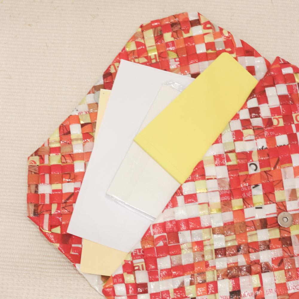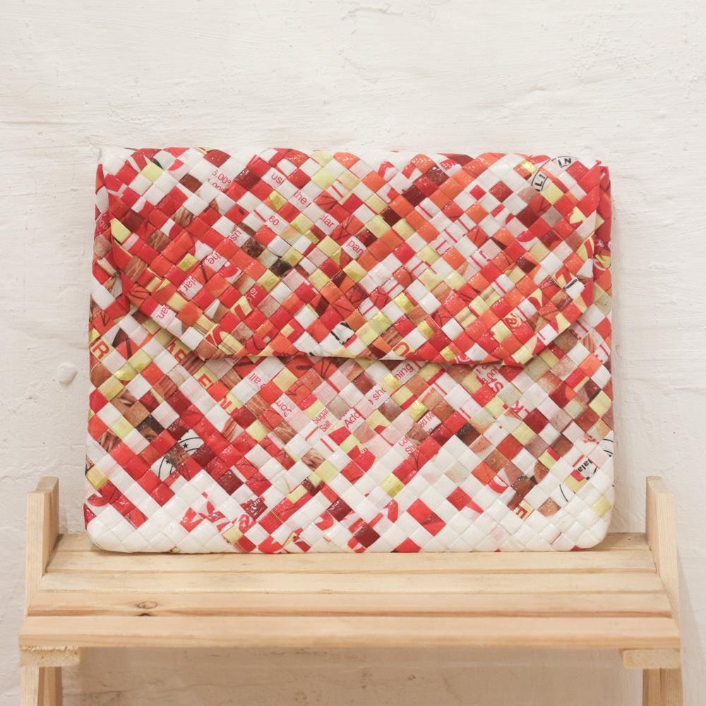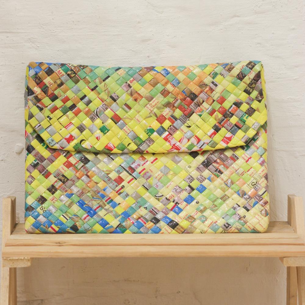 Bags upcycled from rice and feed sacks and weaved by the mothers in Rise Above Foundation.