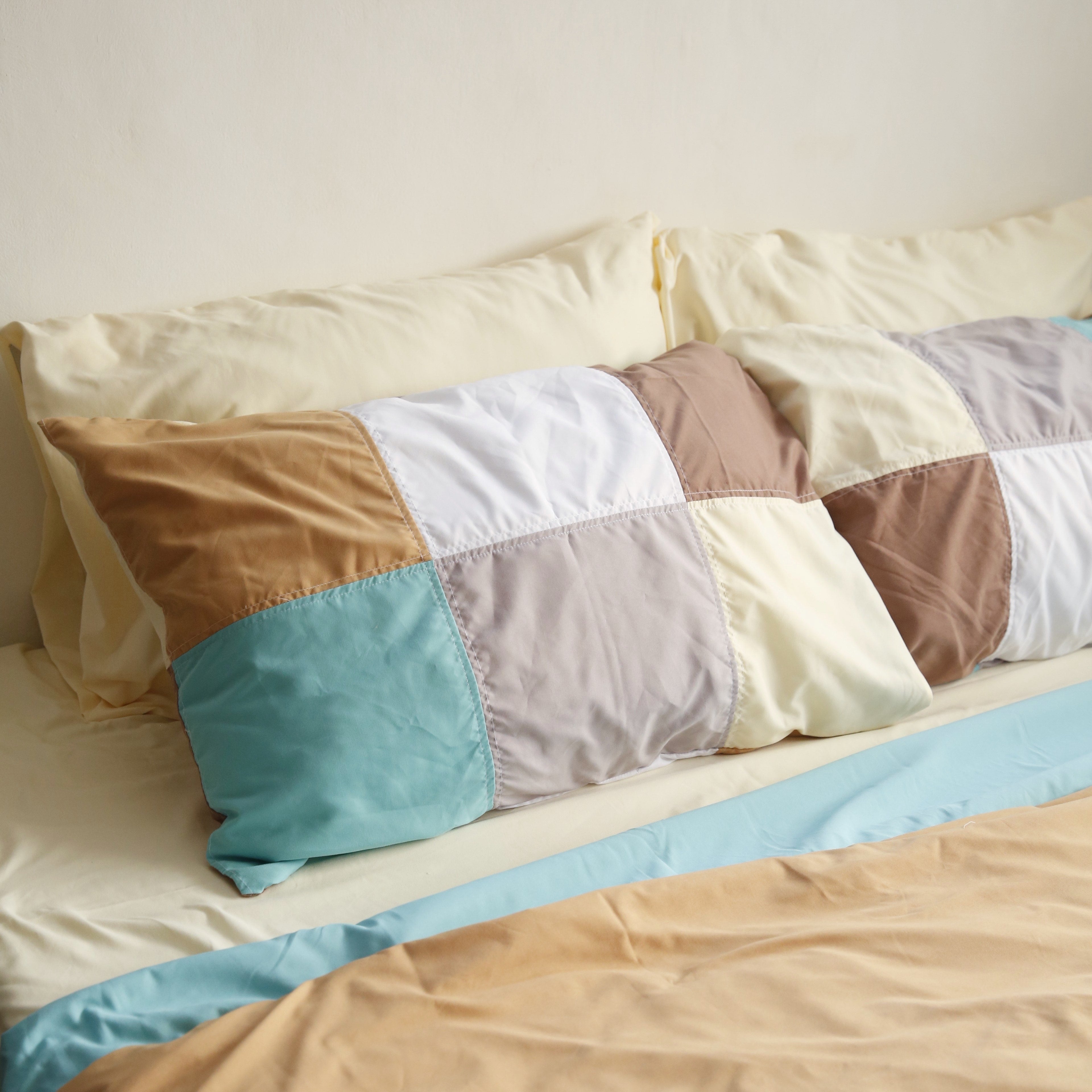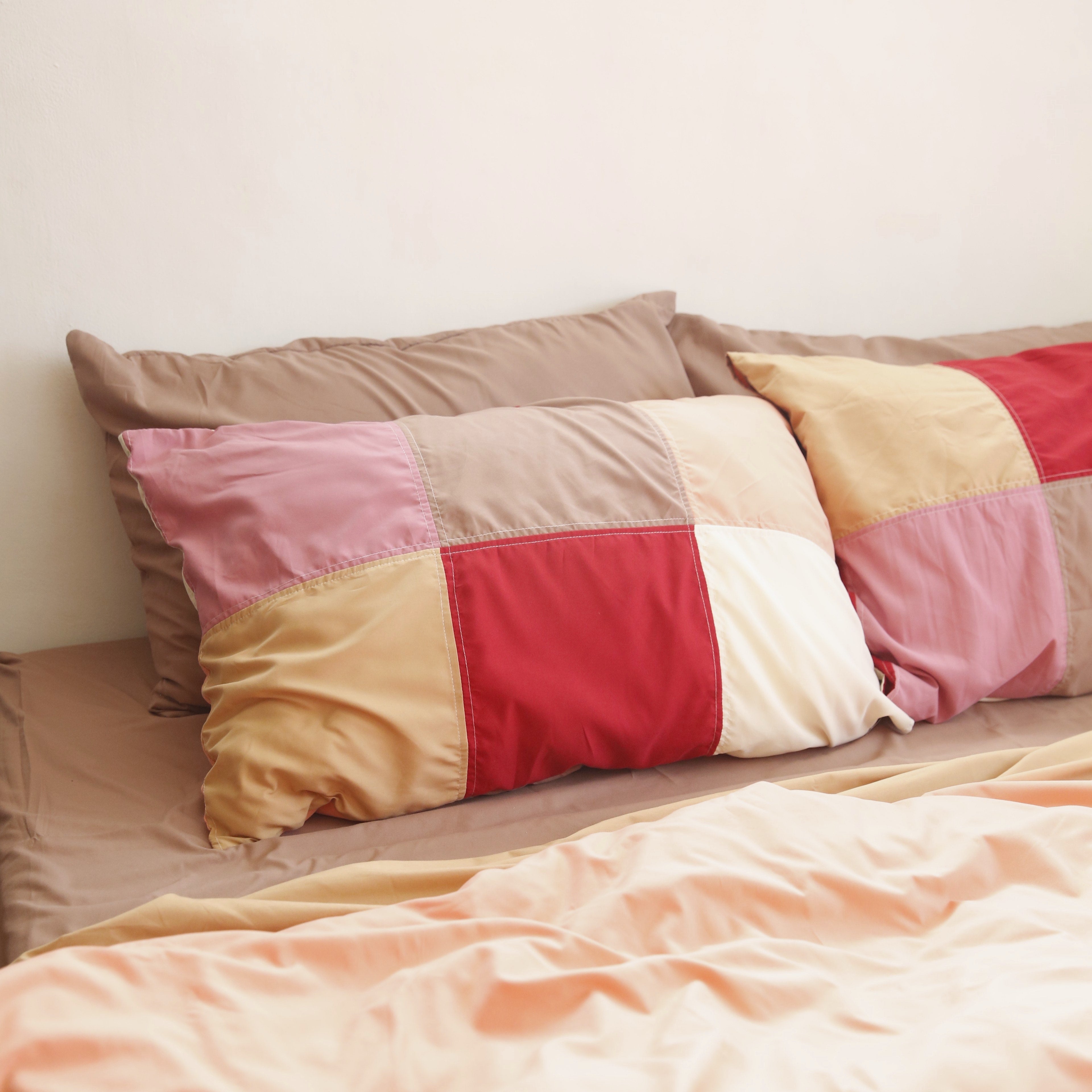 We give life to our retaso by turning fabric scraps into new products. Sleep in style and add some texture in your bed with these beautifully color blocked queen pillowcases.