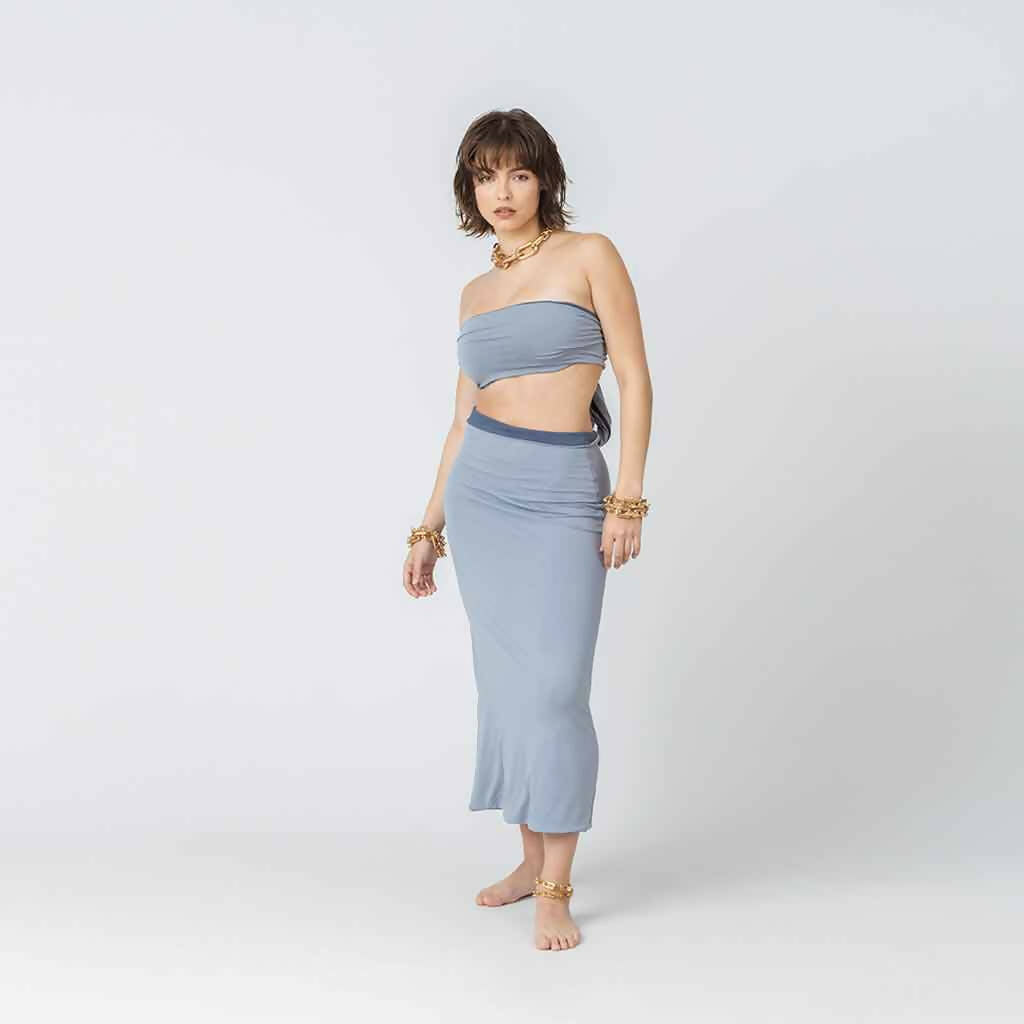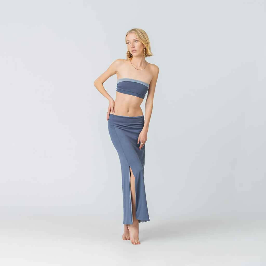 Reversible Boobtube Mini Top in Dusty Blues Bamboo