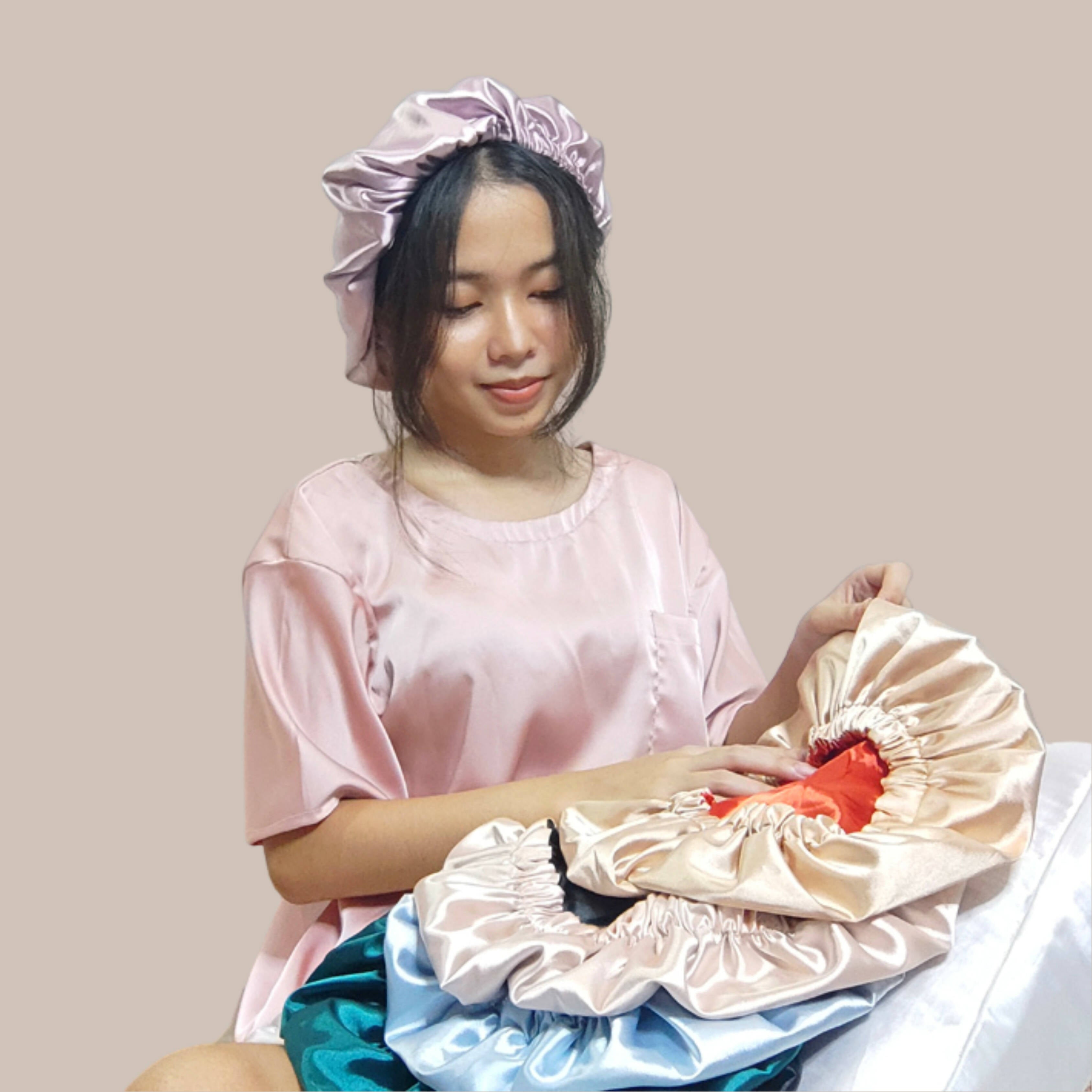 Karisma.Co's Reversible Double-Sided Silk Hair Cap Helps avoid tangles and frizz Minimizes friction between your hair and your pillow, preventing hair breakage which may result to split ends.  It helps retain moisture in your hair because silk won't absorb your hair's natural oils! For babes with curly hair, it will surely help your Curly Girl Method! Other product details:  Reversible 15 colors available Made up of Charmeuse Silk  Kindly refer to the size chart for you to take the exact measurements, for a better fit.