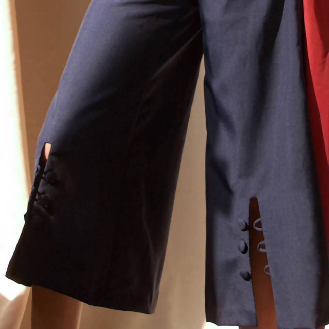 Our Ribbon Tailored Culottes are made for the everyday. Made from sustainable linen, designed with our signature slit and ribbon and button details, and fully lined with pockets. Comes in two colors: Navy and Marsala.