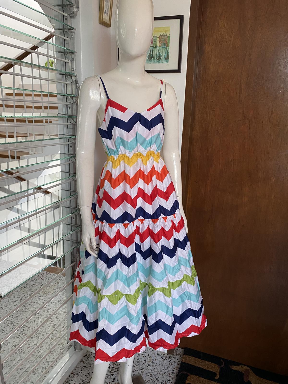 ROBERTS DRESS IN COLORED LINES PRINT