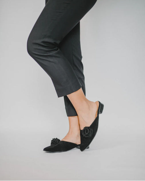 The Rosa is a standout piece from the Dani Osmeña x Annie & Lori Collaboration. This pointy-toed suede leather mule features a 0.5” heel and is adorned with a playful floral accent, bringing holiday cheer to your feet.