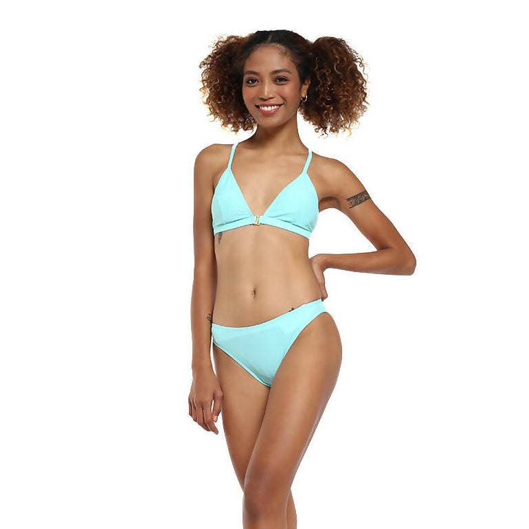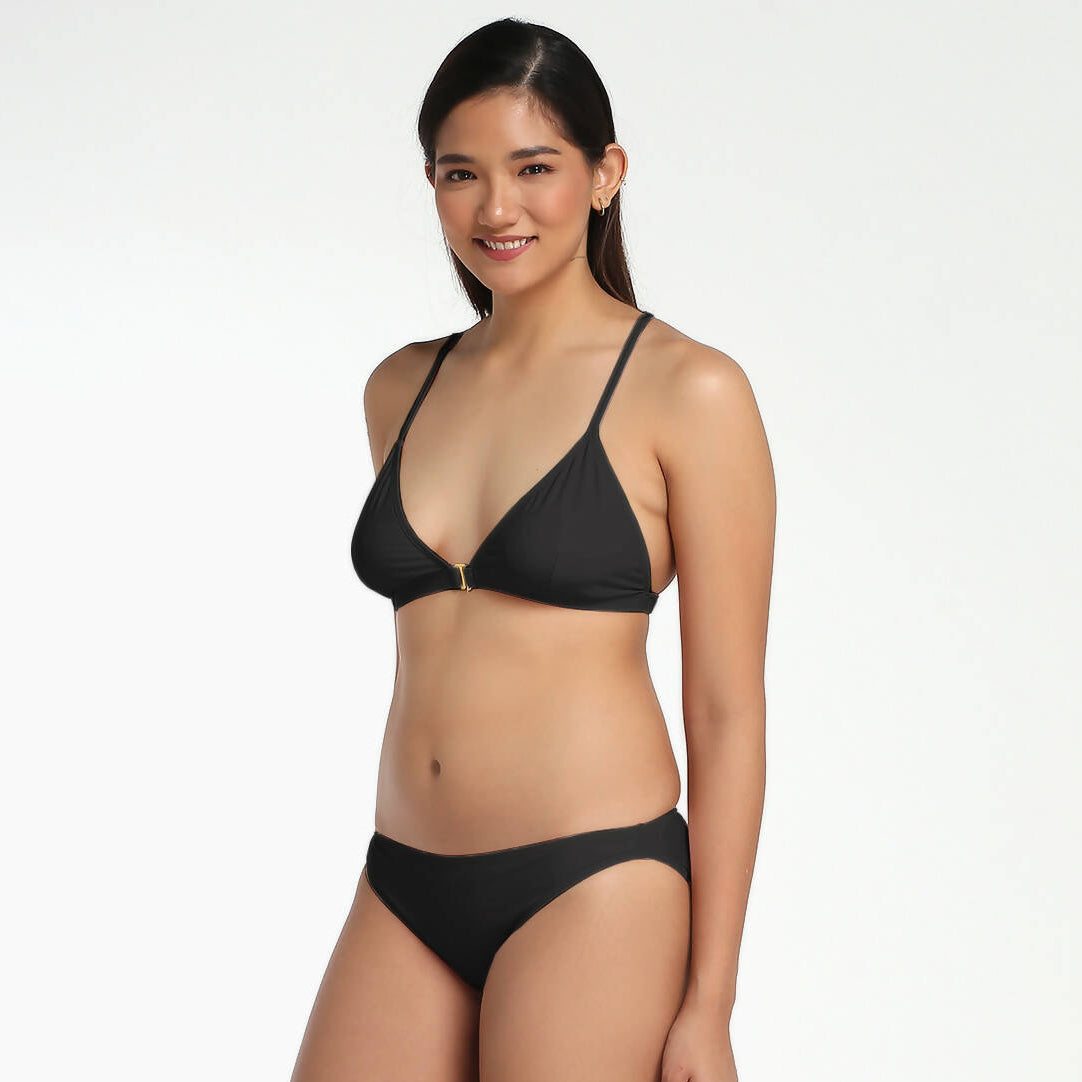Show your playful side with our Sadie 2 piece suit. It has a knotted net like design in the back which makes it unique. Its front clasp feature will make it easier for you to wear. Paired with a classic cut bottom with a little ruche on the back. Wear it as a set or use it separately depending on what the occasion calls.