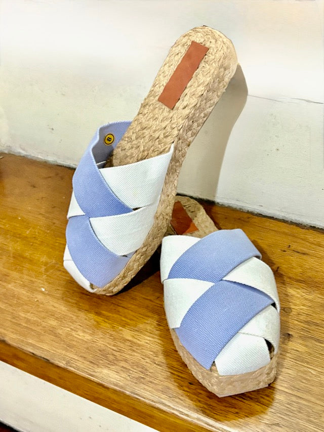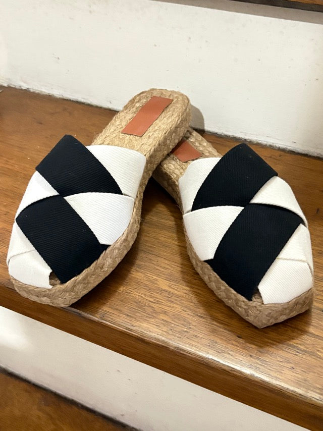 Criss cross strap over handwoven abaca sole. SALIMBAYO's clean and crisp look is perfect for slow, easy and mindful steps.