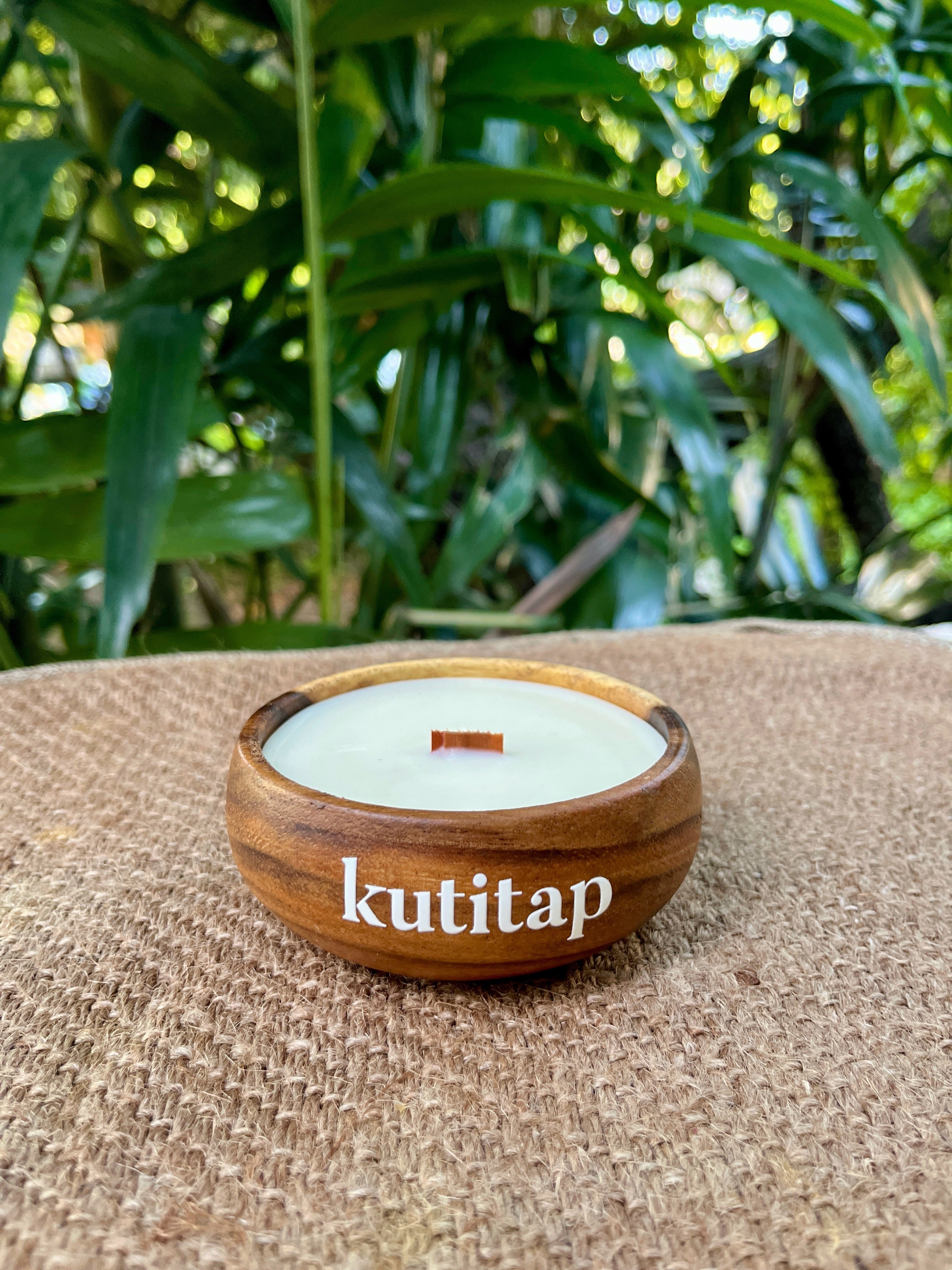 Paskong Pinoy Christmas Candles in Natural Acacia Wooden Bowls 125g