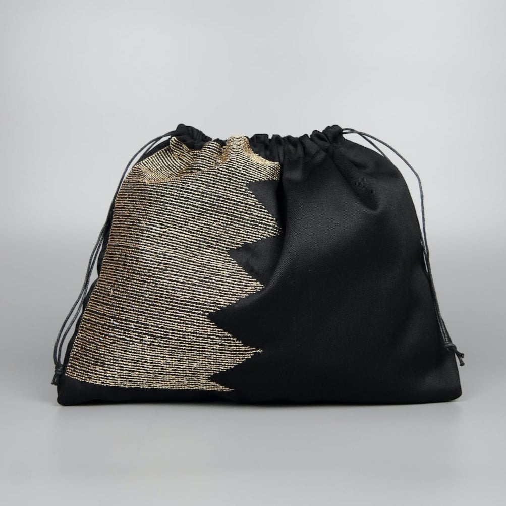Selena in Gold on Black Twill Drawstring Pouch Handbag