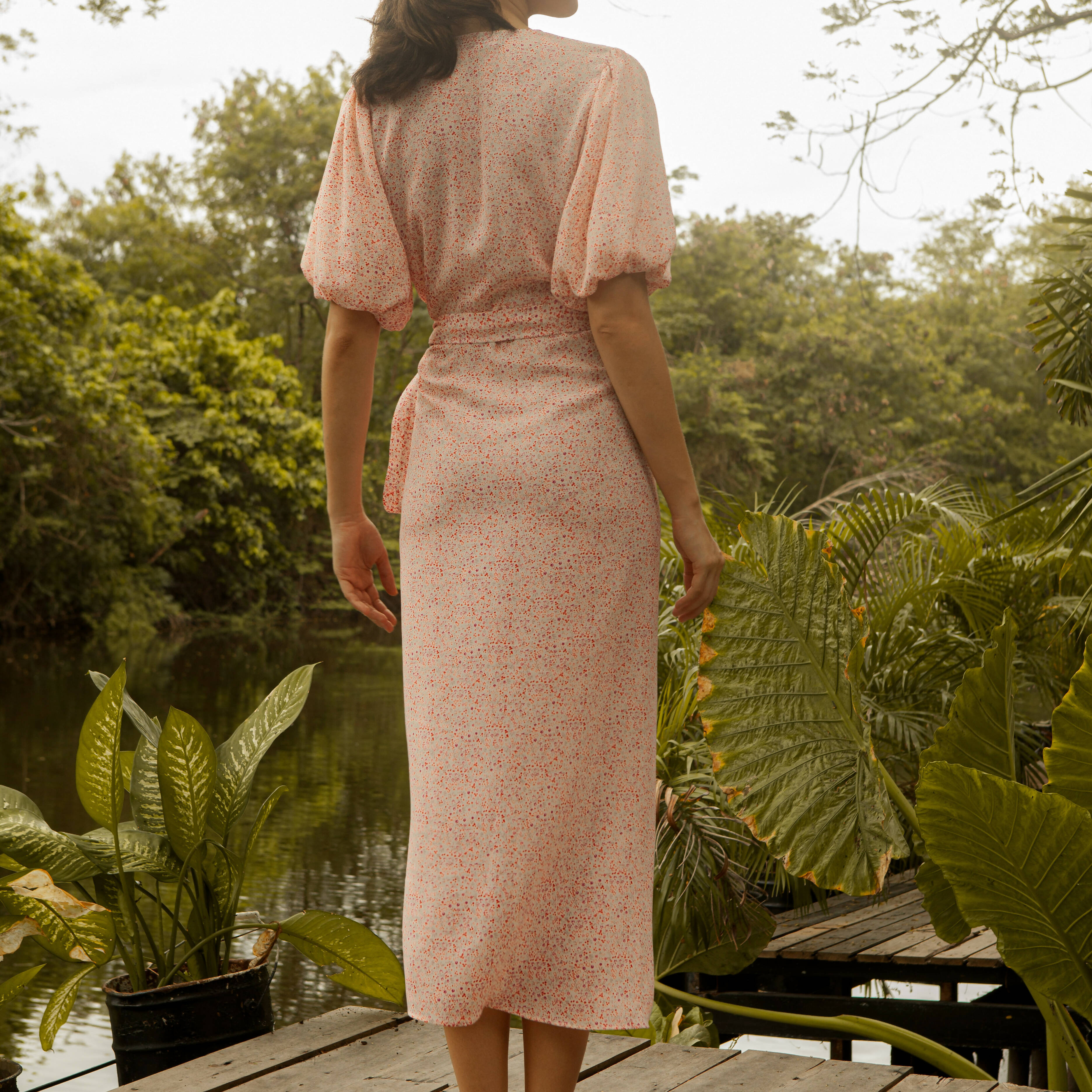 Short Mushroom Sleeve Long Dress in Sakura Crepe