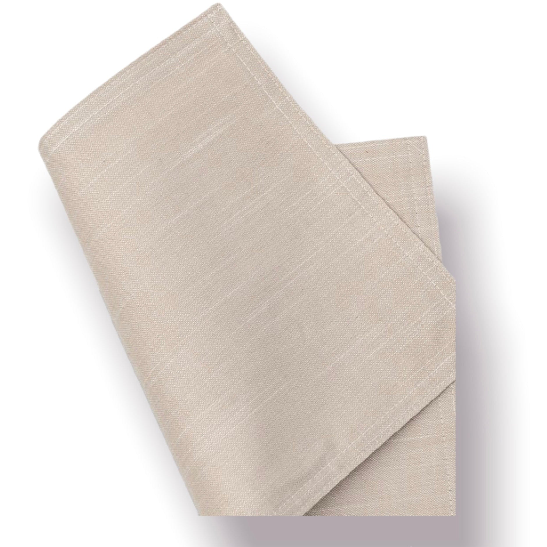 This 4-piece Sienna placemat and table napkin set brings a well dressed look to your dining room.  Each set is crafted from crisp and durable linen blend.  Plus, we love that this set is iron-safe and it cleans up easily in the washing machine.Dimensions:  12" x 18"Material: Cotton-Linen BlendQty: 4-piece set of Placemat & Table NapkinAlso available in color, Ivory.