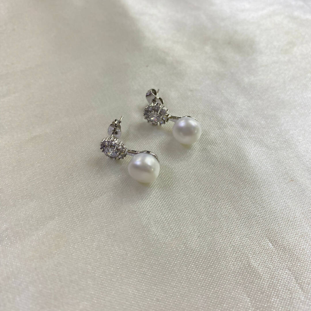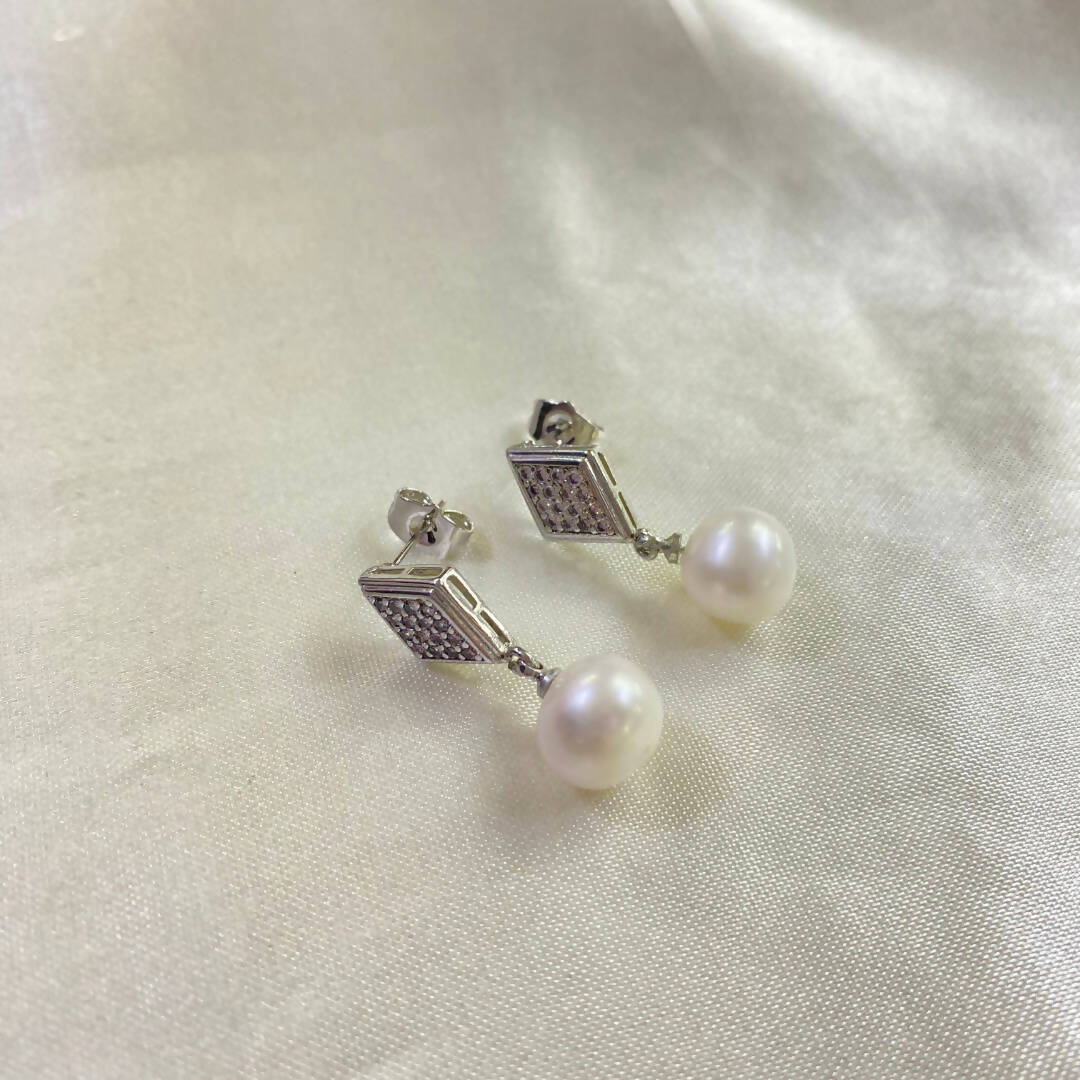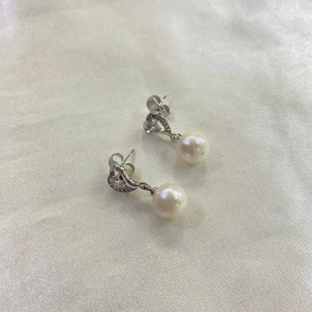 Freshwater Pearl Earrings Material: Silver Plated Shape: Semi-Round Size: 8-9 mm