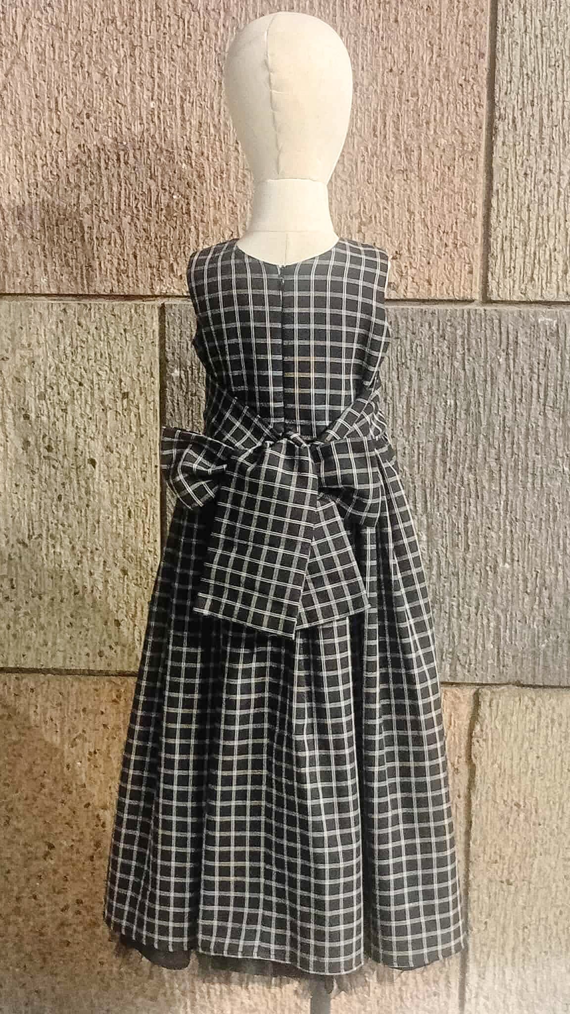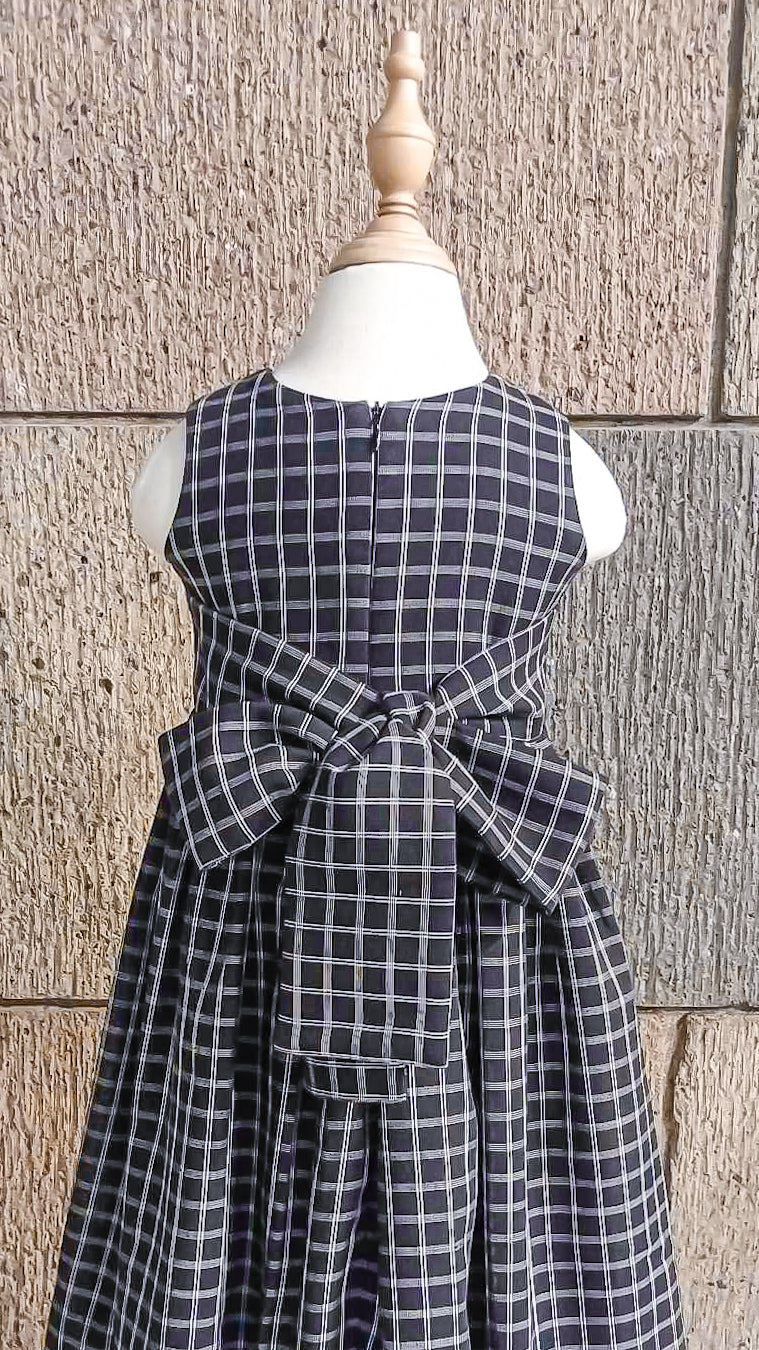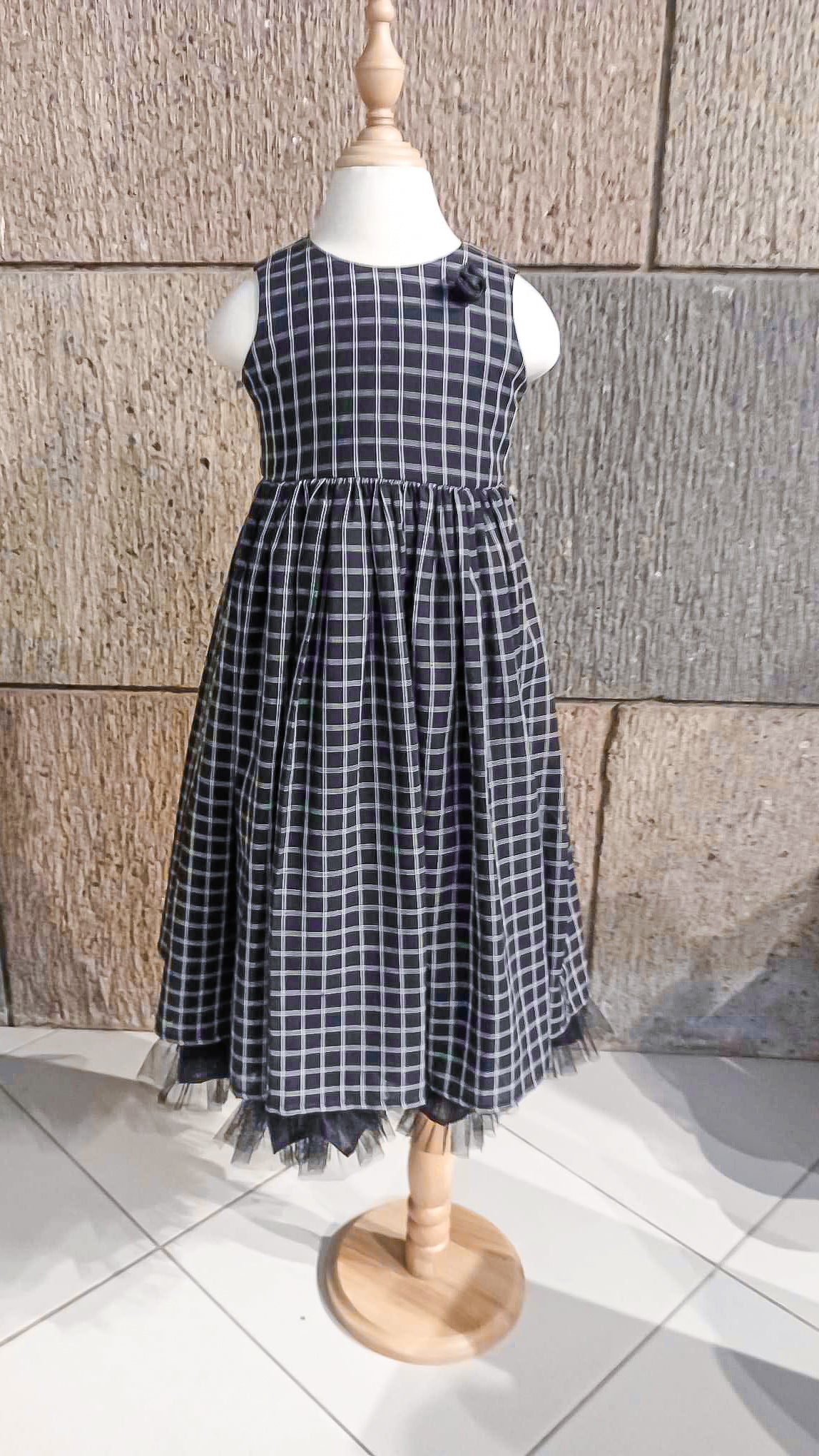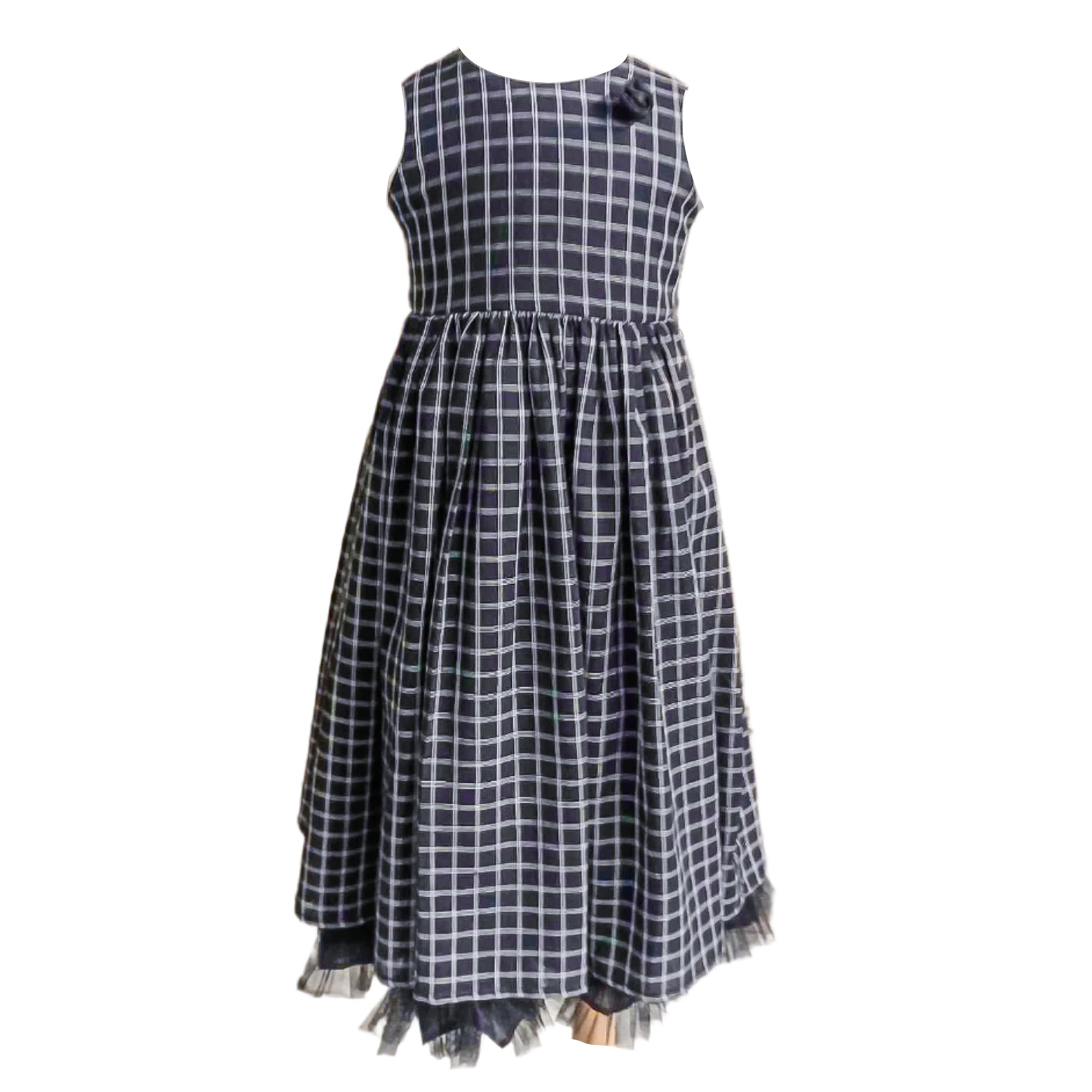Sleeveless Balloon Skirt with Tulle Hem in Black and White Checks