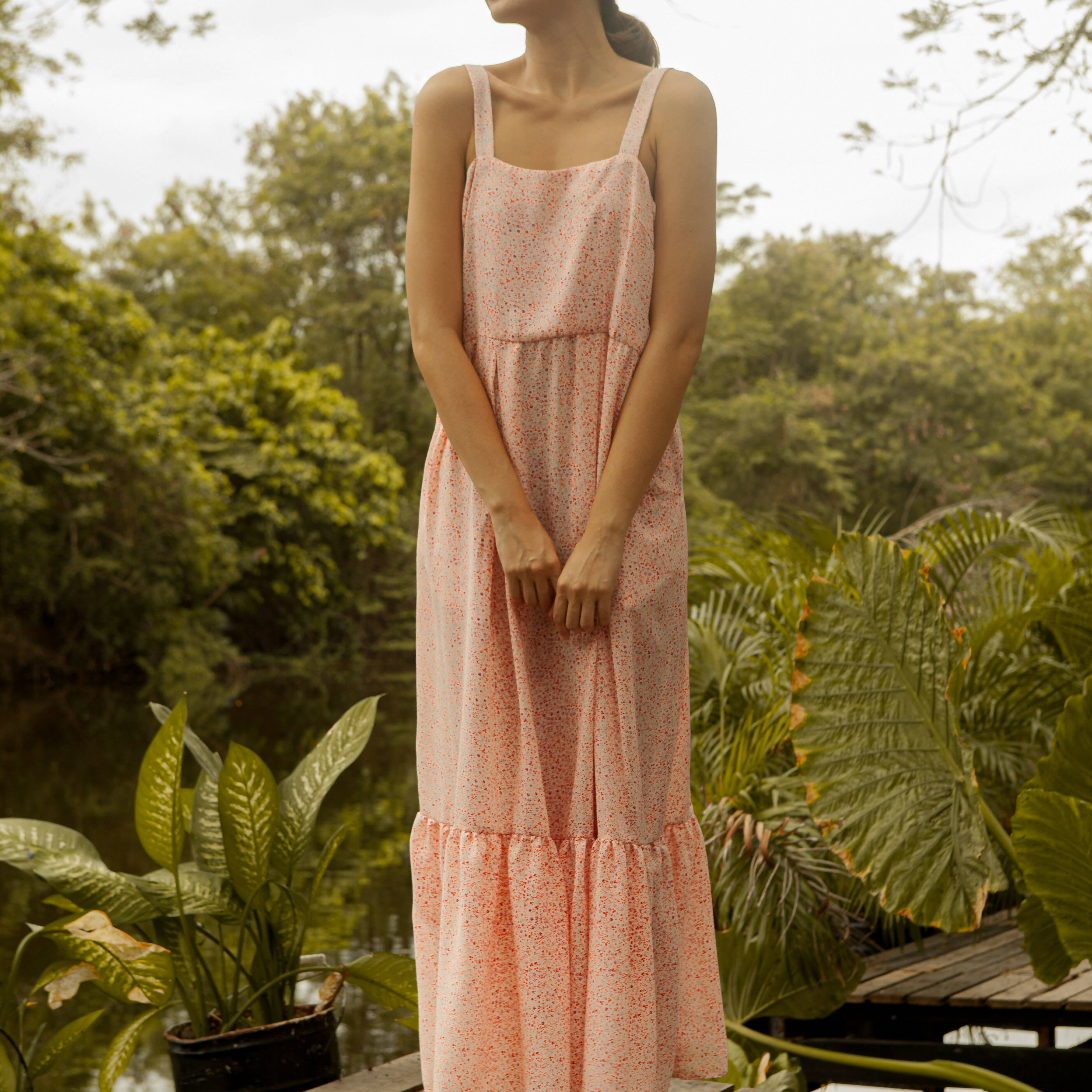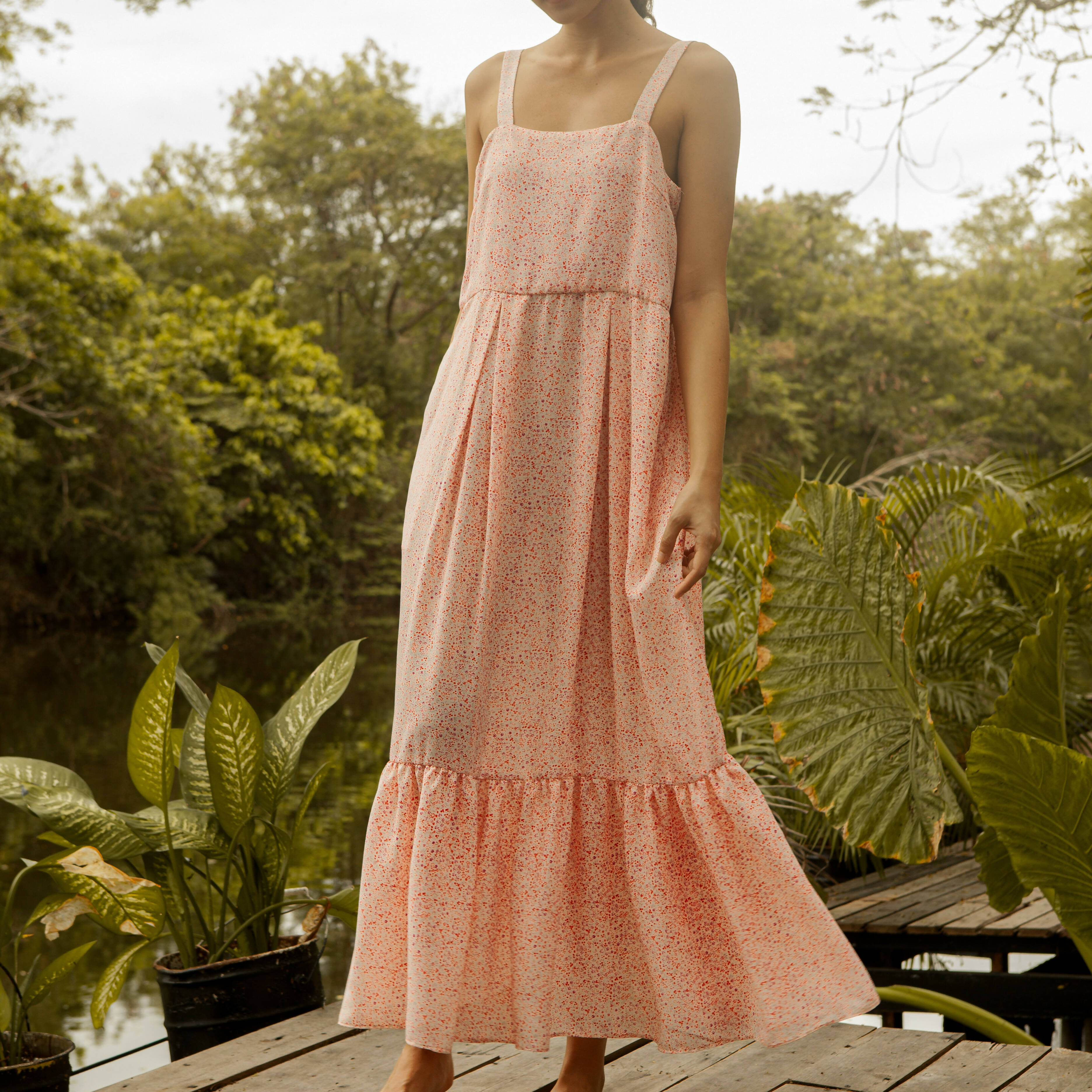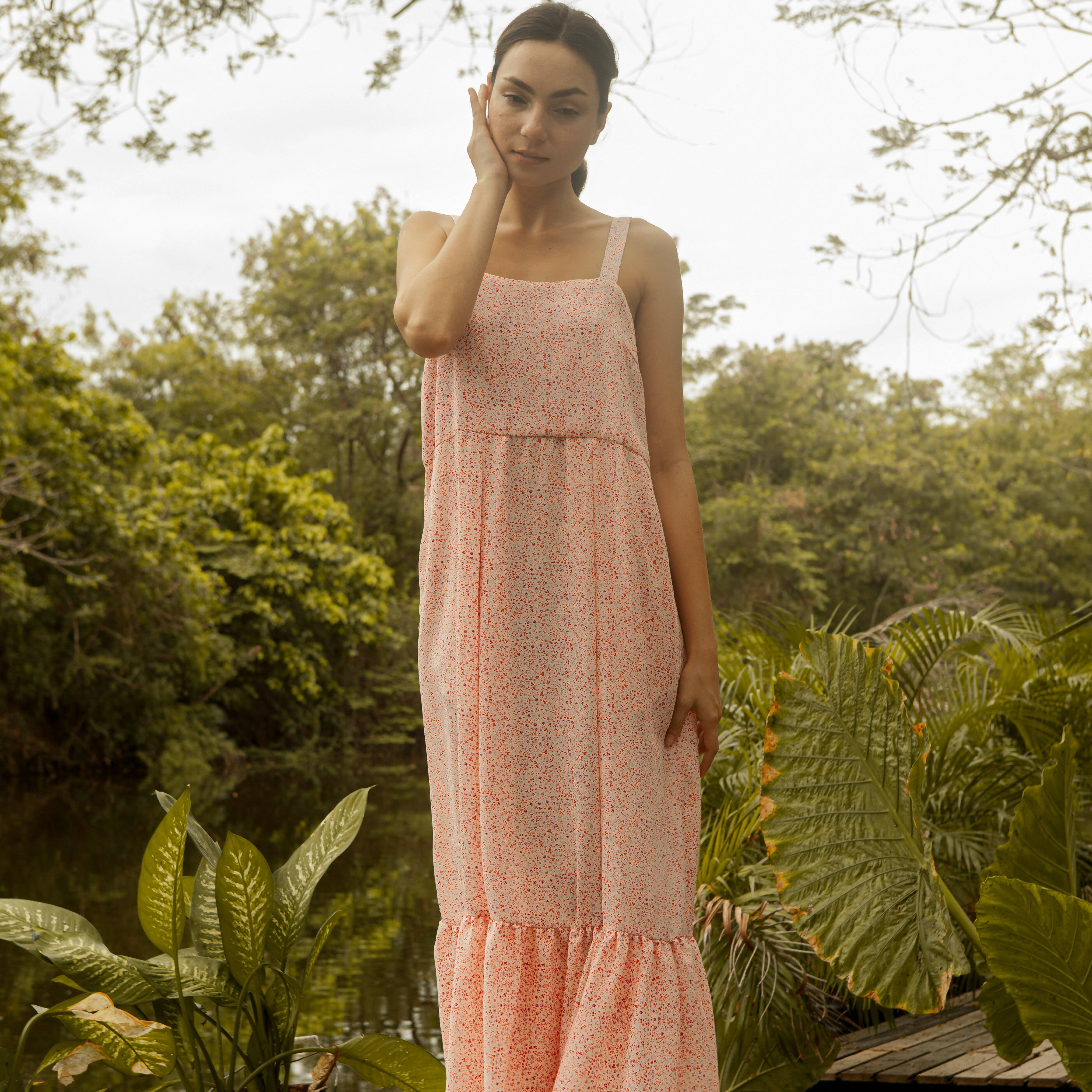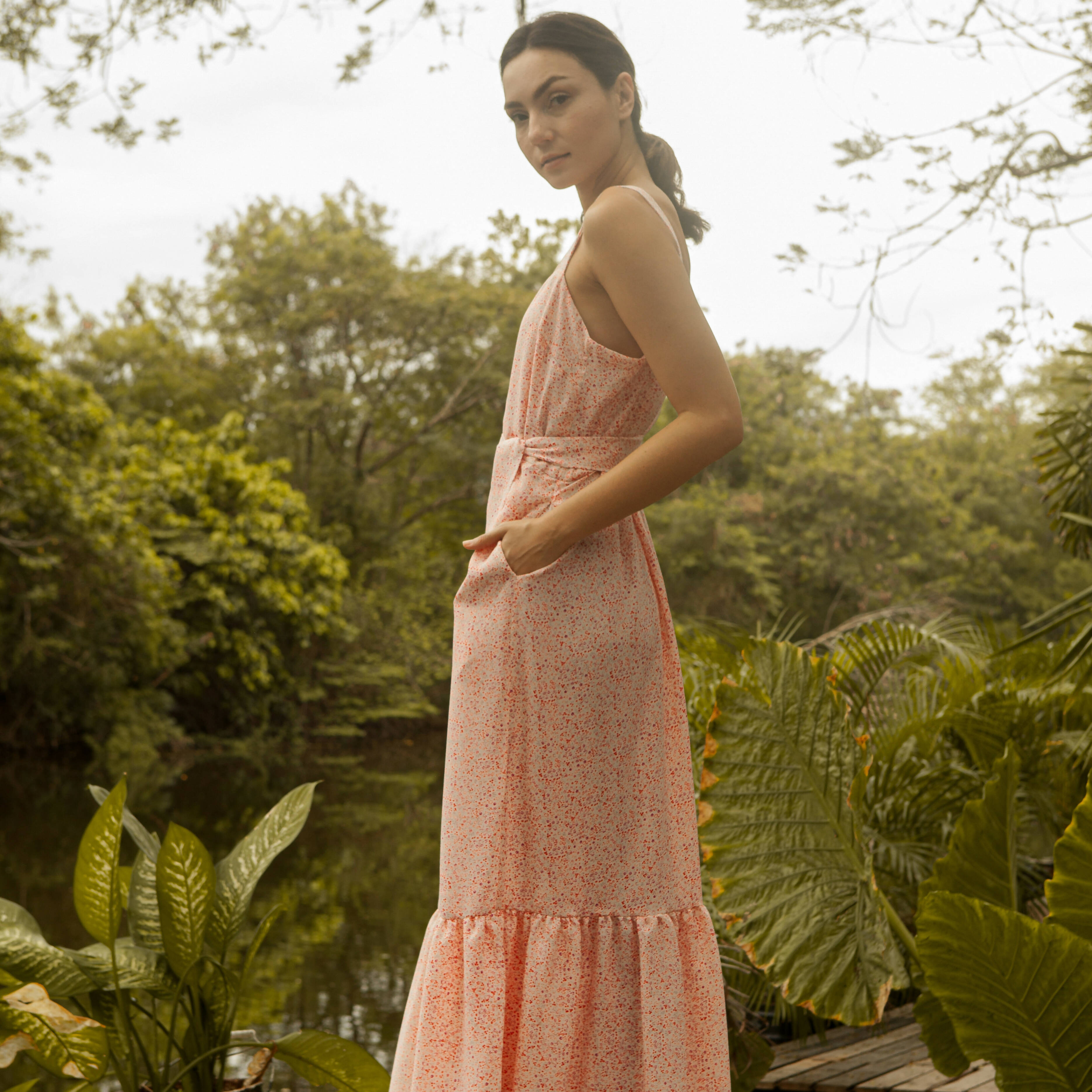 Style: Women’s Dress Wide Strap, Zero Button, Zero Zipper, Inclusive of Detachable Belt, Squark Neckline, Voluminous Skirt, Ruffle Hem, Side Invisible Pocket Fabric Composition: Lightweight Crepe Care instructions: Gentle hand wash or dry-cleanableSize Chart:S: Bust 35”, Waist 37”M: Bust 38”, Waist 40”L: Bust 41”, Waist 43”  Model's measurements are 5'10" and 31-24-35. Model is wearing small.