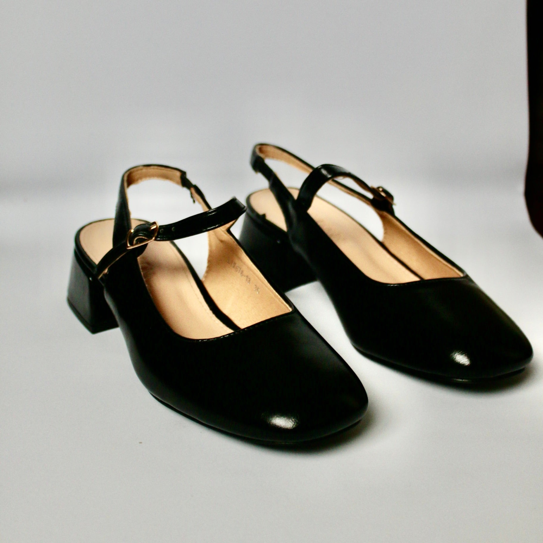 SOLANA blends timeless style with modern ease, offering effortless elegance for both formal and casual outfits.  1.5" block heel, black Mary Jane design with thin strap and silver buckle.  *If you have wide feet, consider sizing up for comfort.