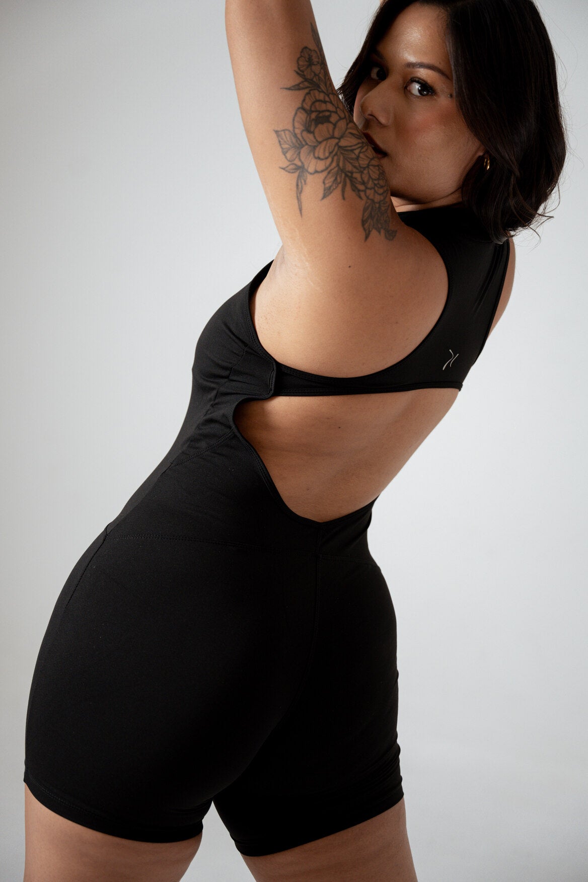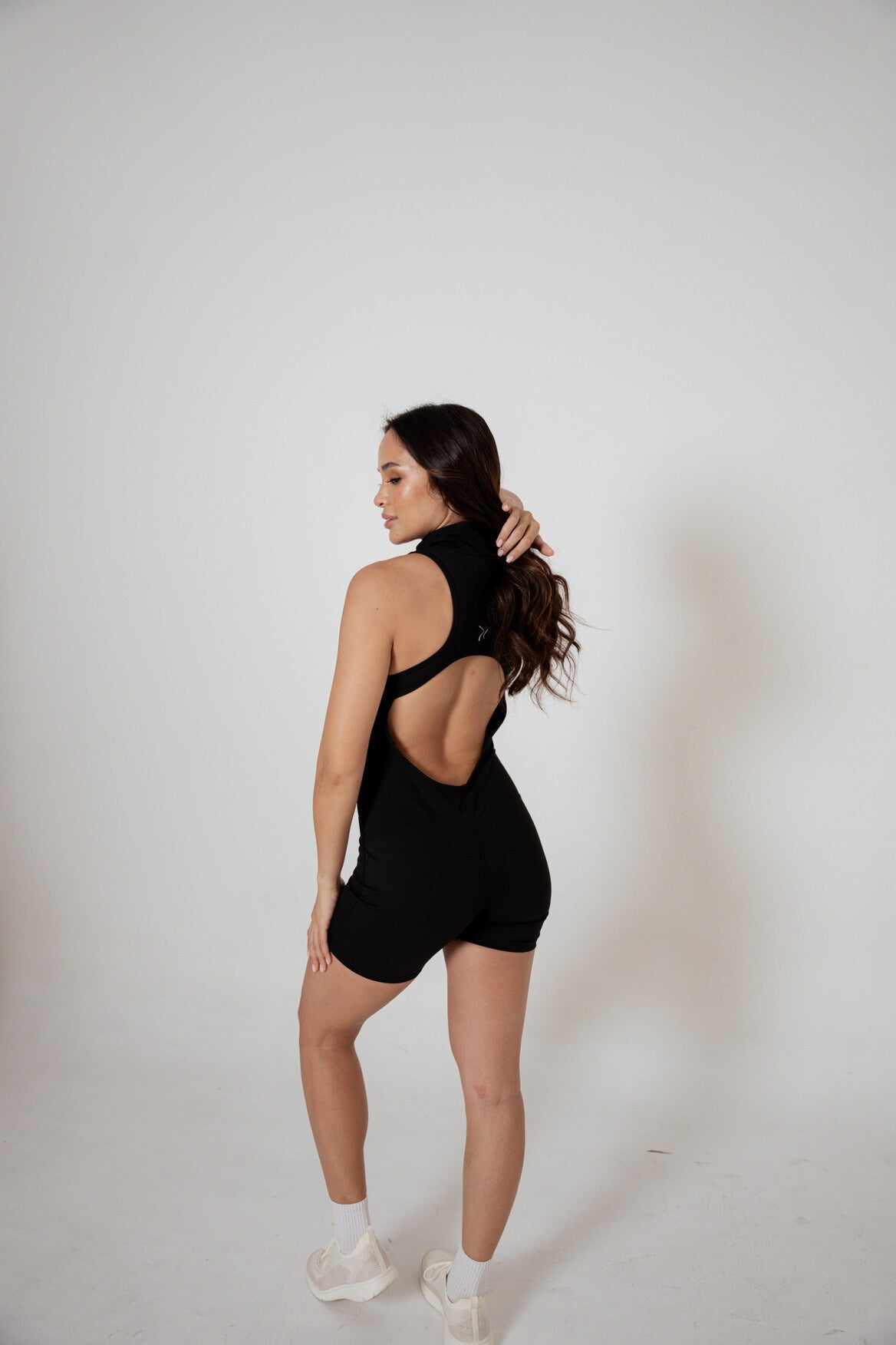 Soledad Playsuit - The ultimate cardio companion. Low-cut Back and Front Zipper: Designed for optimal performance during cardio sessions like running and biking. Buttery-feel Fabric: Offers exceptional comfort. Sweat-wicking Properties: Keeps you dry and focused during intense workouts. Material: 75% Nylon 25% Spandex