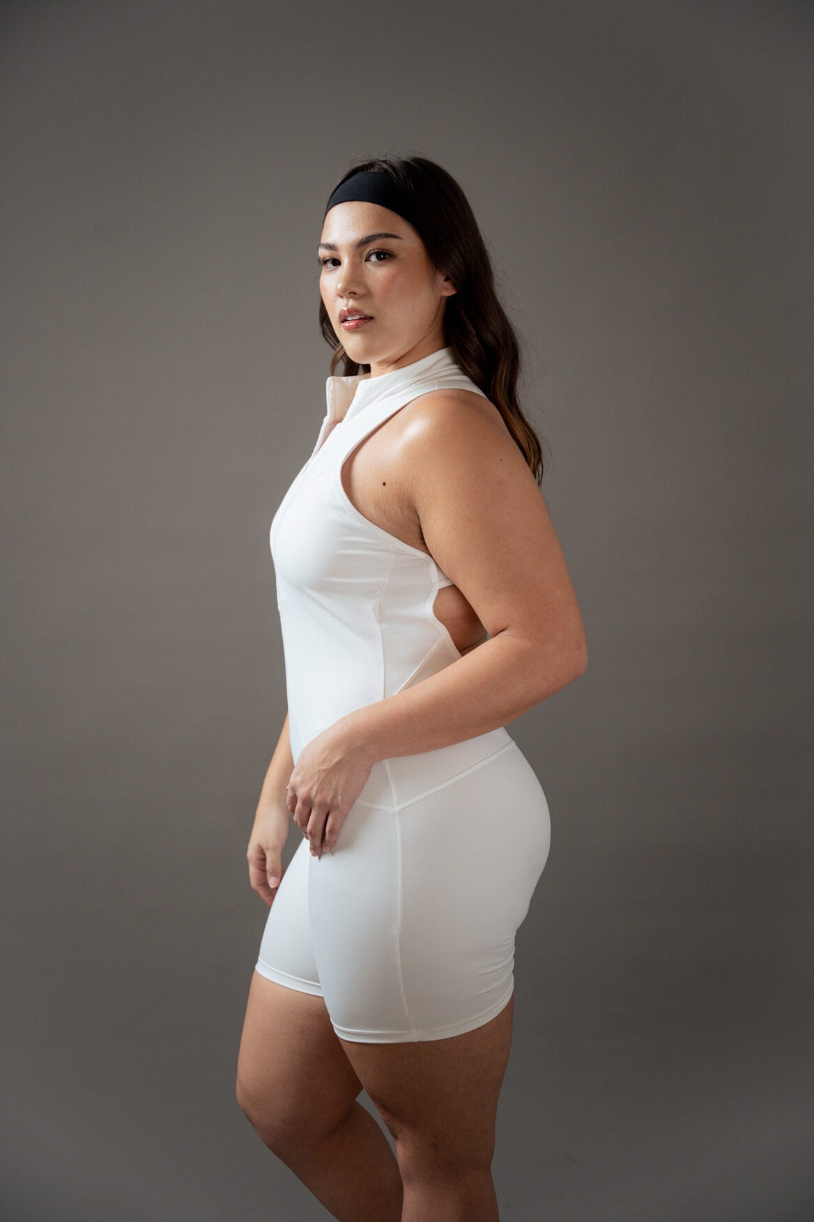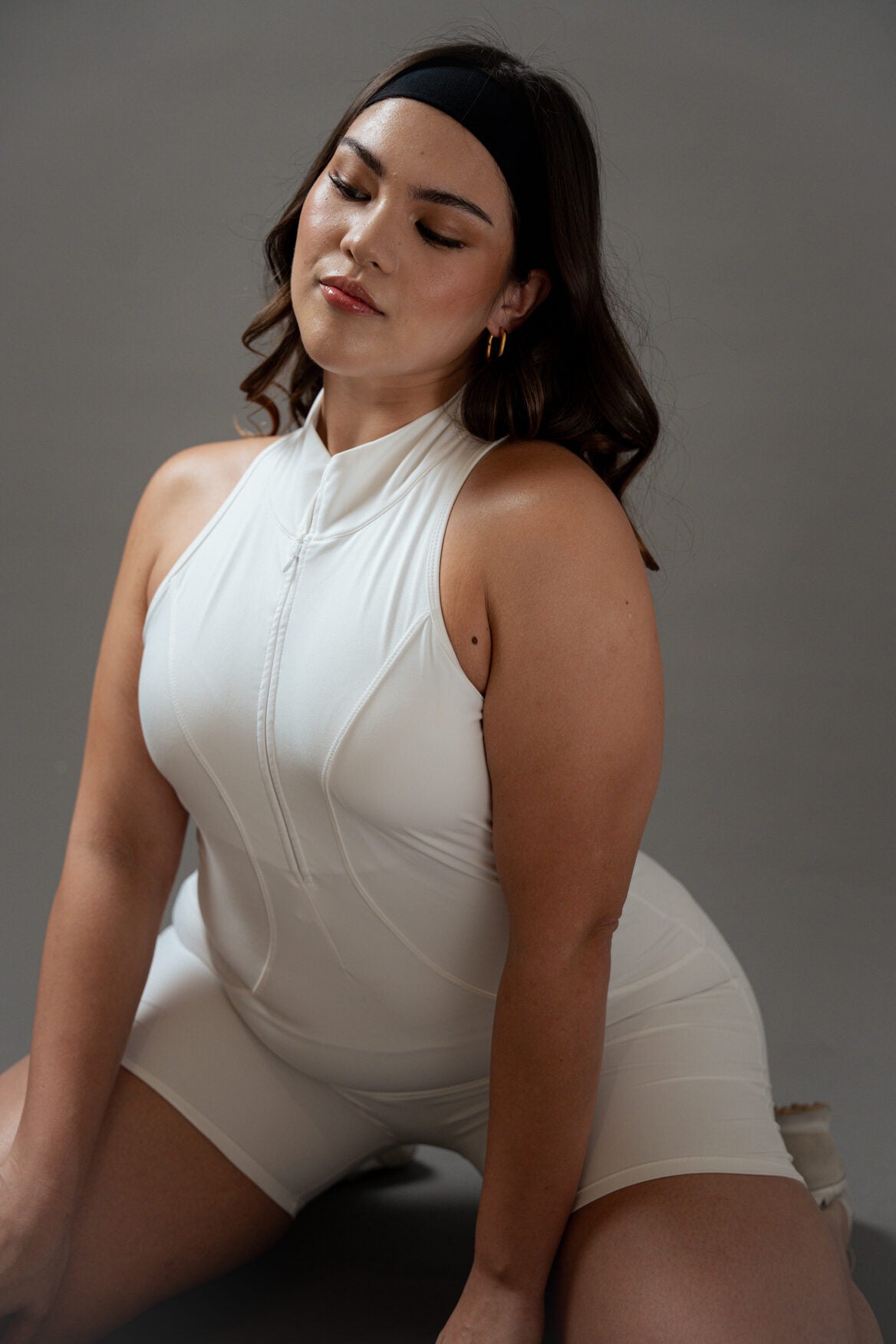 Soledad Playsuit - The ultimate cardio companion. Low-cut Back and Front Zipper: Designed for optimal performance during cardio sessions like running and biking. Buttery-feel Fabric: Offers exceptional comfort. Sweat-wicking Properties: Keeps you dry and focused during intense workouts. Material: 75% Nylon 25% Spandex