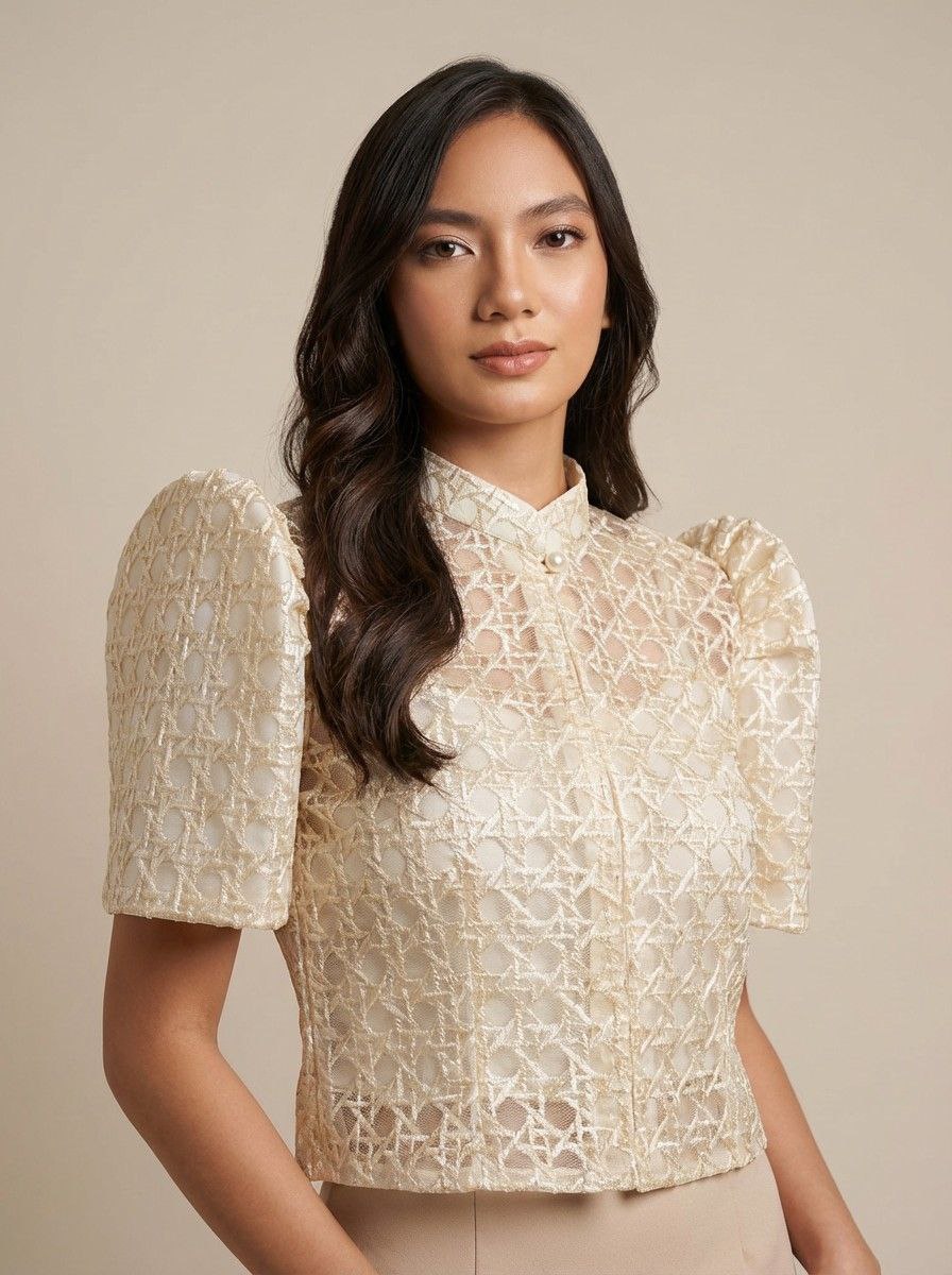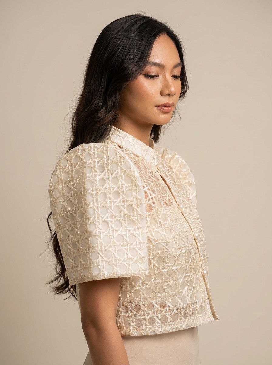 Elevate your modern Filipina look with this timeless Filipiniana Bolero, crafted in delicate embroidered organza with a classic solihiya pattern inspired by traditional Filipino weaving.