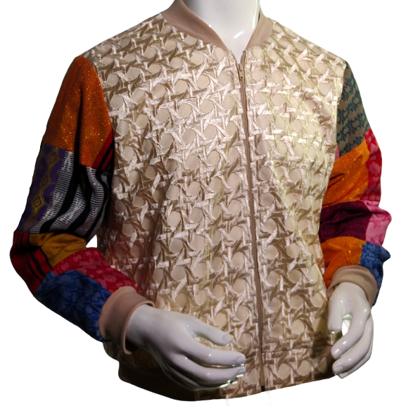 Solihiya Weave Bomber Jacket with Indigenous Patchwork Sleeves