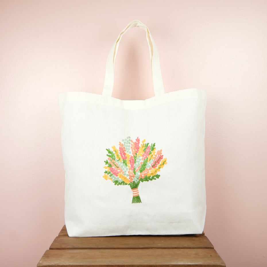 Spring Bouquet on Natural Canvas Shopping Tote
