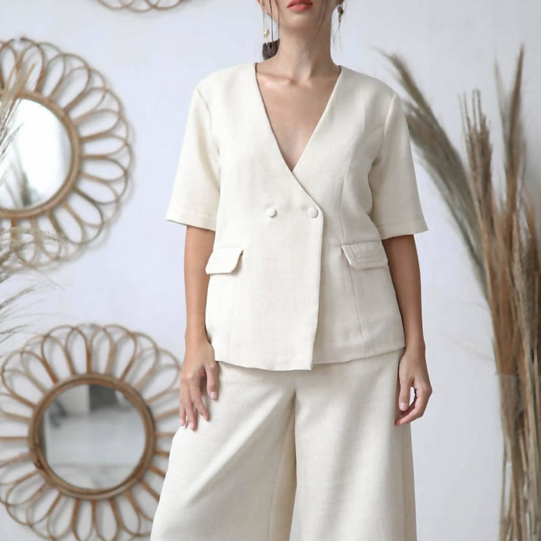 Oversized leisure blazer with signature stitch detail made with linen, fully lined + with pockets Care Label - Regular