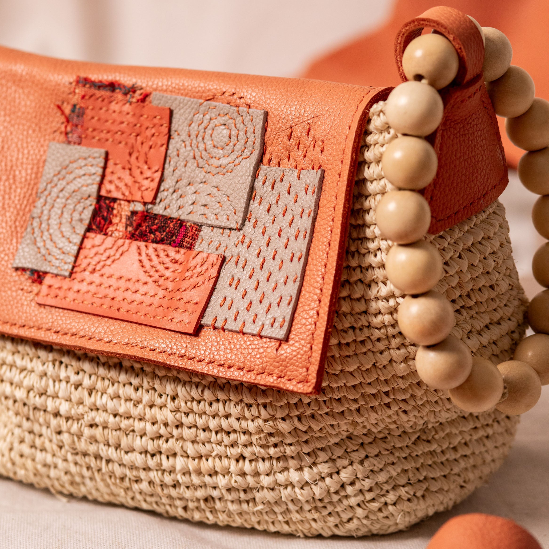 - Hand-cut and hand-stitched by women leather artisans except for the straps.- Made from 100% cowhide leather scraps, textile cut-offs and locally sourced raffia. - Used a textile for the lining which was also upcycled using threads from unused polo shirts. - With magnetic enclosure - Each bag is uniquely designed as we use currently available leather scraps and Philippine textiles used in our other bag designs. - Comes with a strap