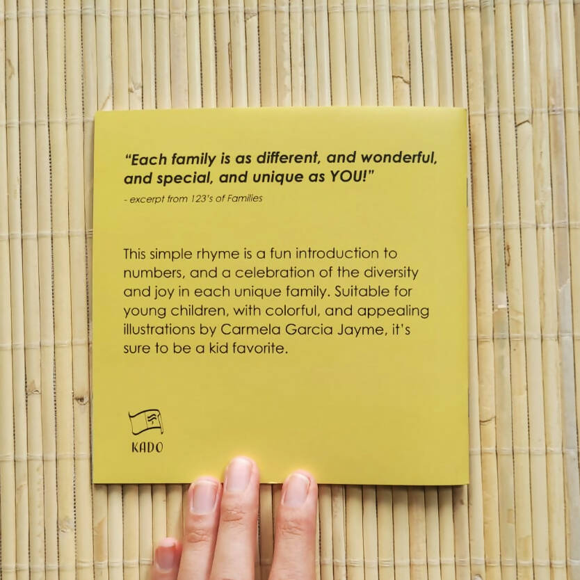 This simple rhyme is a fun introduction to numbers, and a celebration of the diversity and joy in each unique family. Suitable for young children, with colorful, and appealing illustrations by Carmela Garcia Jayme, it’s sure to be a kid favorite. (Size 6x6")