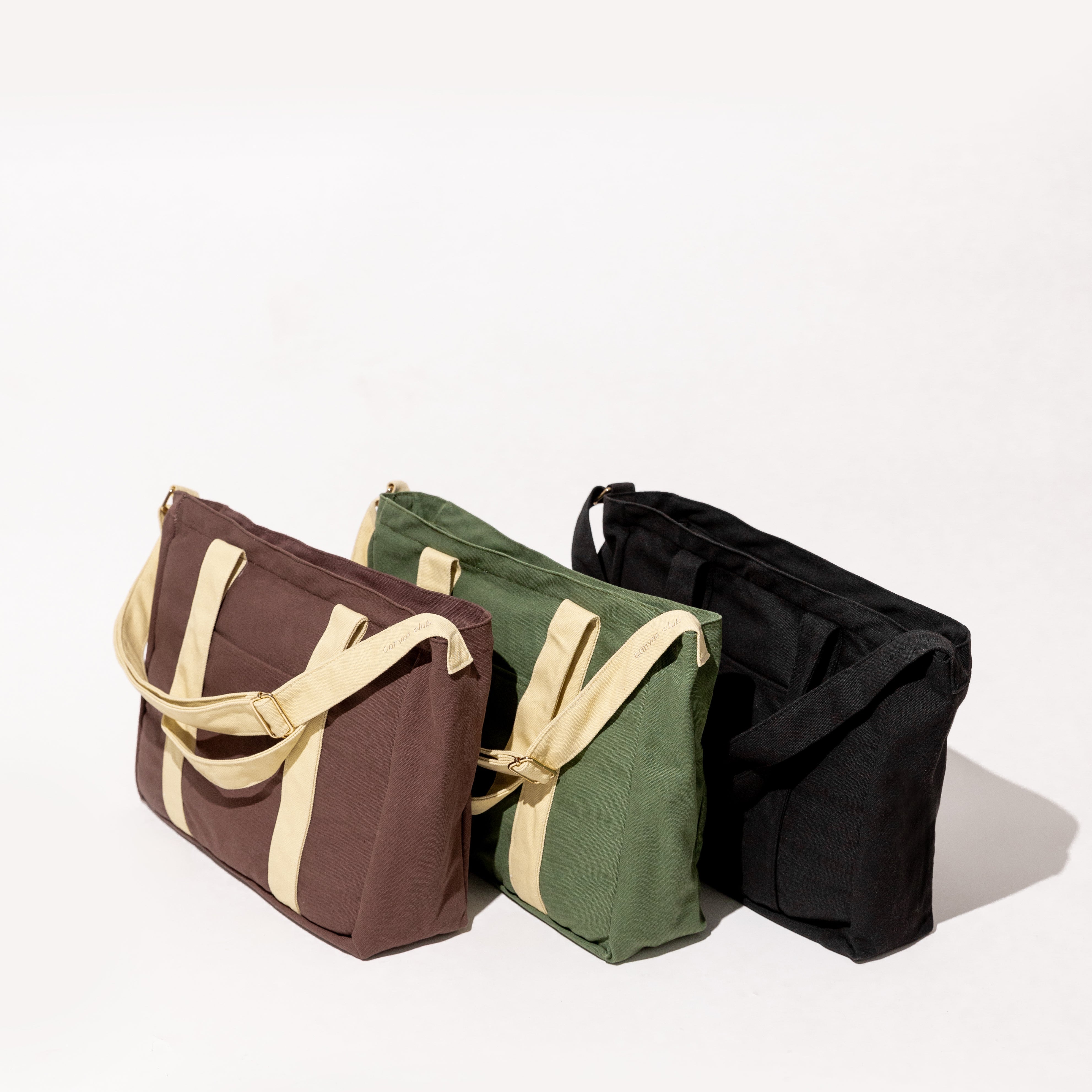 Meet The Folio - it’s your work-study-play buddy.It’s sleek and spacious, making it the ultimate choice for all the roles you play in a single day. H: 13inL: 19in (laid flat)W: 5.5 in  Made with thick canvas fabric Padded laptop compartment with velcro strap Can fit up to 17-inch laptops Zipper closure Outer pocket: 9in 1 small inner pocket with zipper With bottle holder (can hold bottles with 3.5 inches diameter) 2 types of handles - with adjustable strap (maximum length of 46 inches)