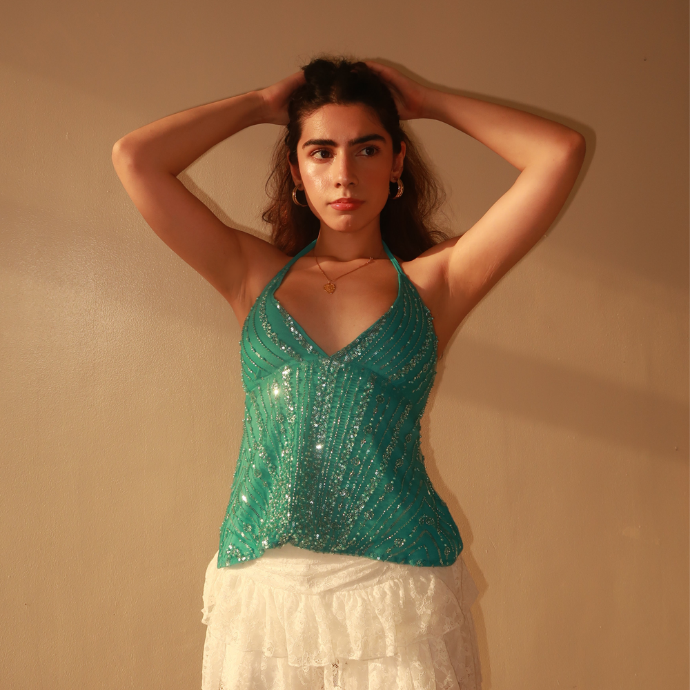 • Bead Embellished Halter Top