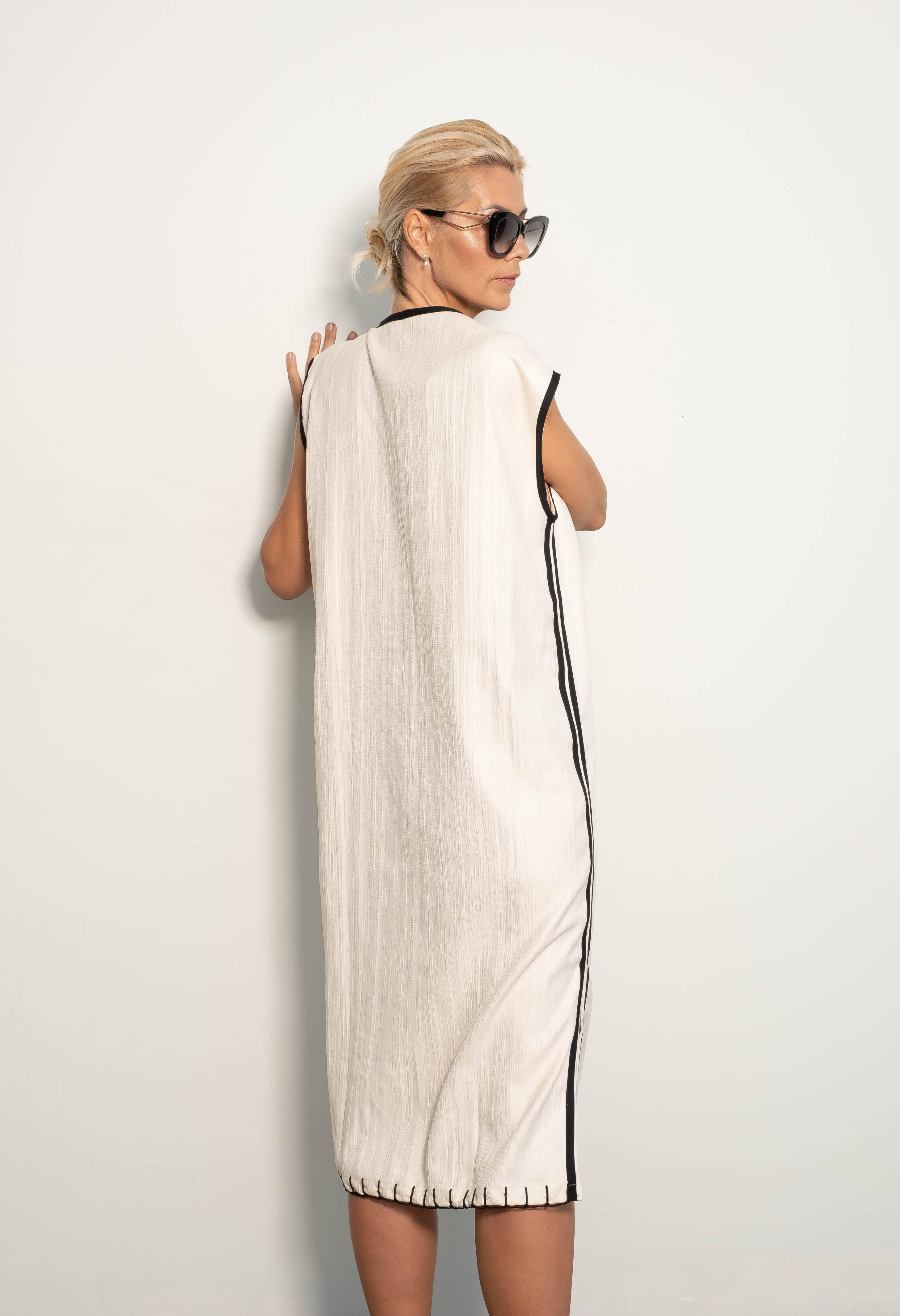 The Shift is a clean slate.  It has been designed to be your wardrobe's solution piece.  It is structured yet loose enough for you to be carefree.  The Shift is made from jacquard linen and has been sewn by a sole Cebuana seamstress.