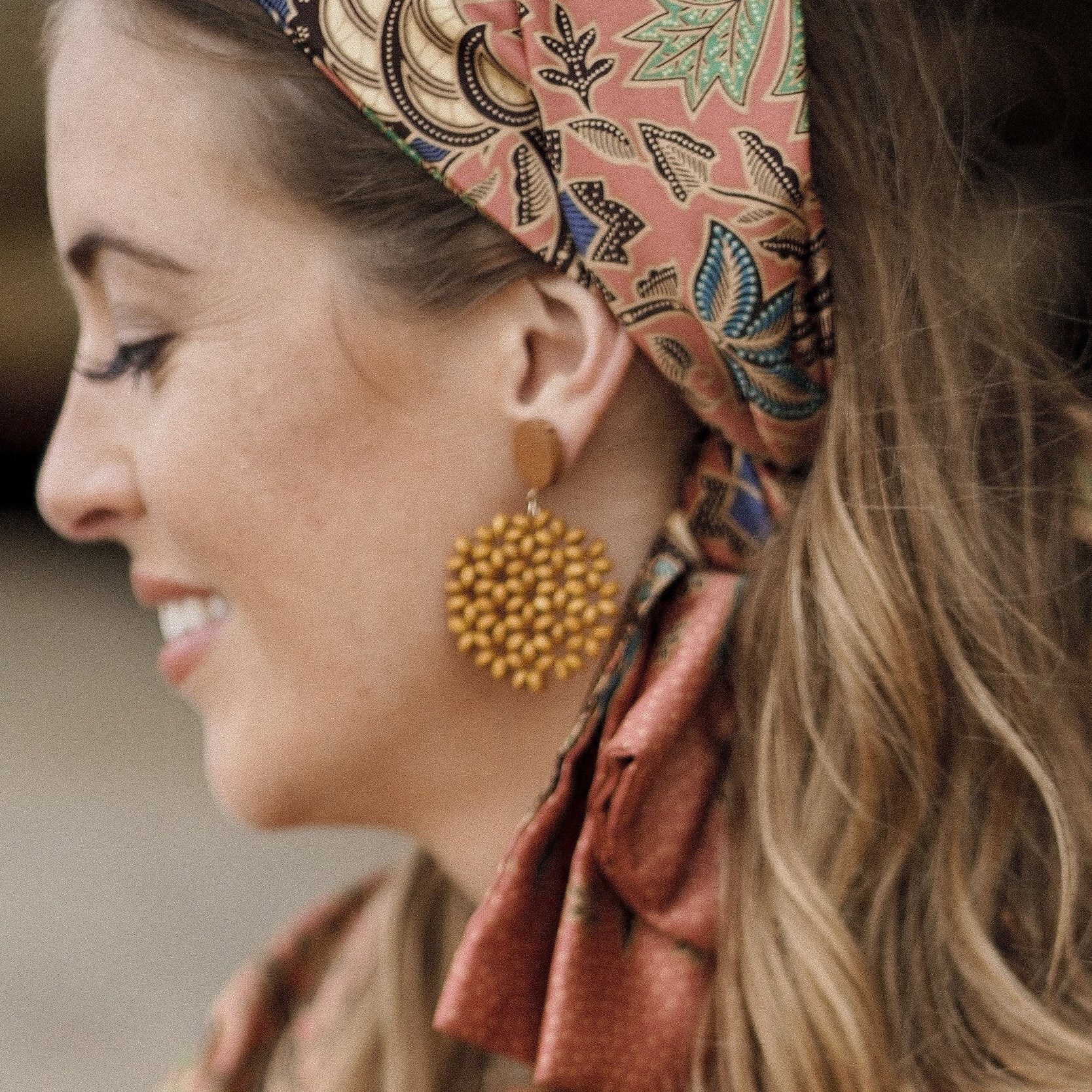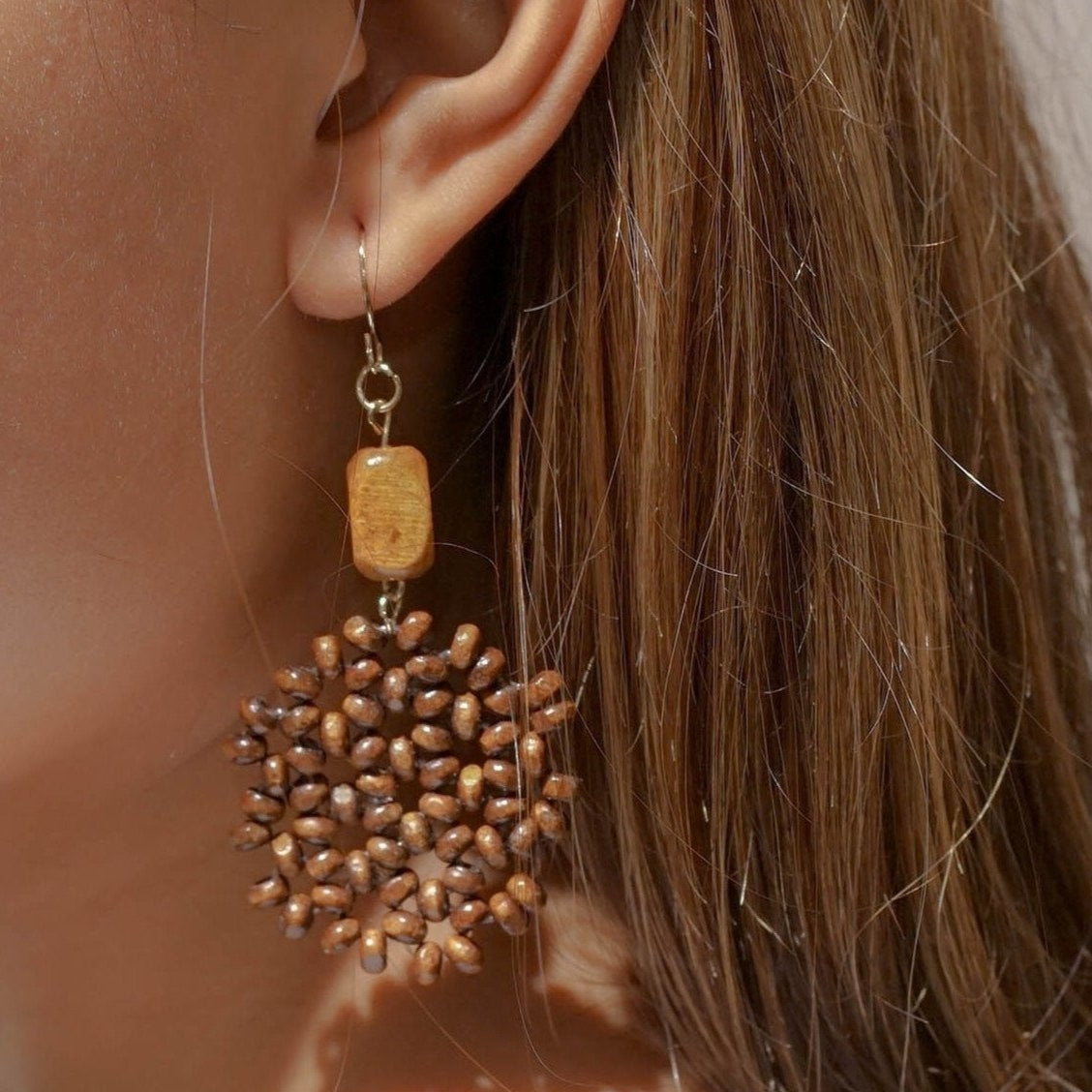 Rustic meets trendy with these handcrafted statement earrings. Available in the following colors: Tan Chocolate Cream