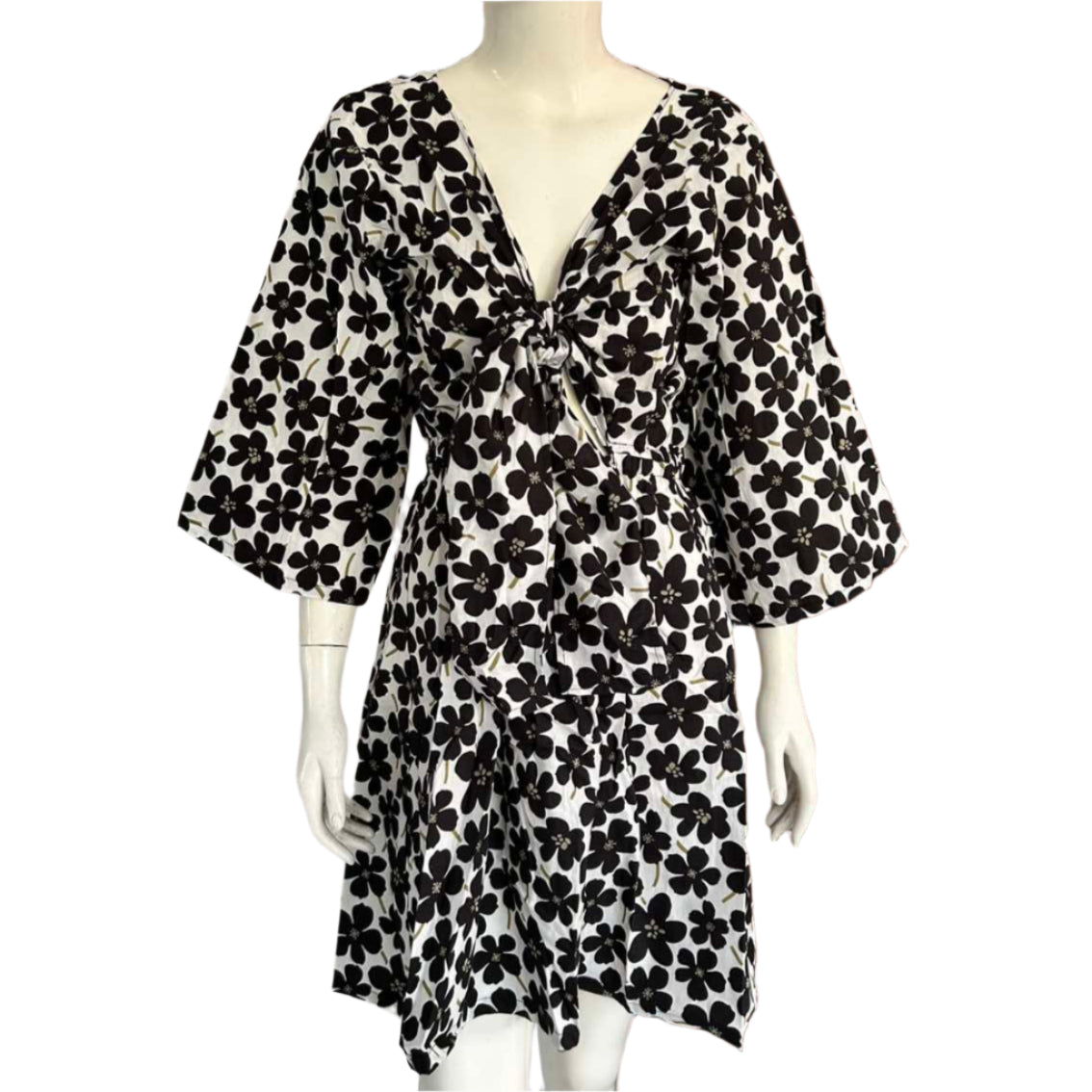 Take the Tiki on your next out-of-town beach trip or wear it to a pool party! The front tie detail and garterized waistband adjusts to your comfort and liking . The Kimono style sleeves adds a chic touch too! - Fabric : Cotton Twill - Handwash or Machine Wash Gentle Cycle - True to size