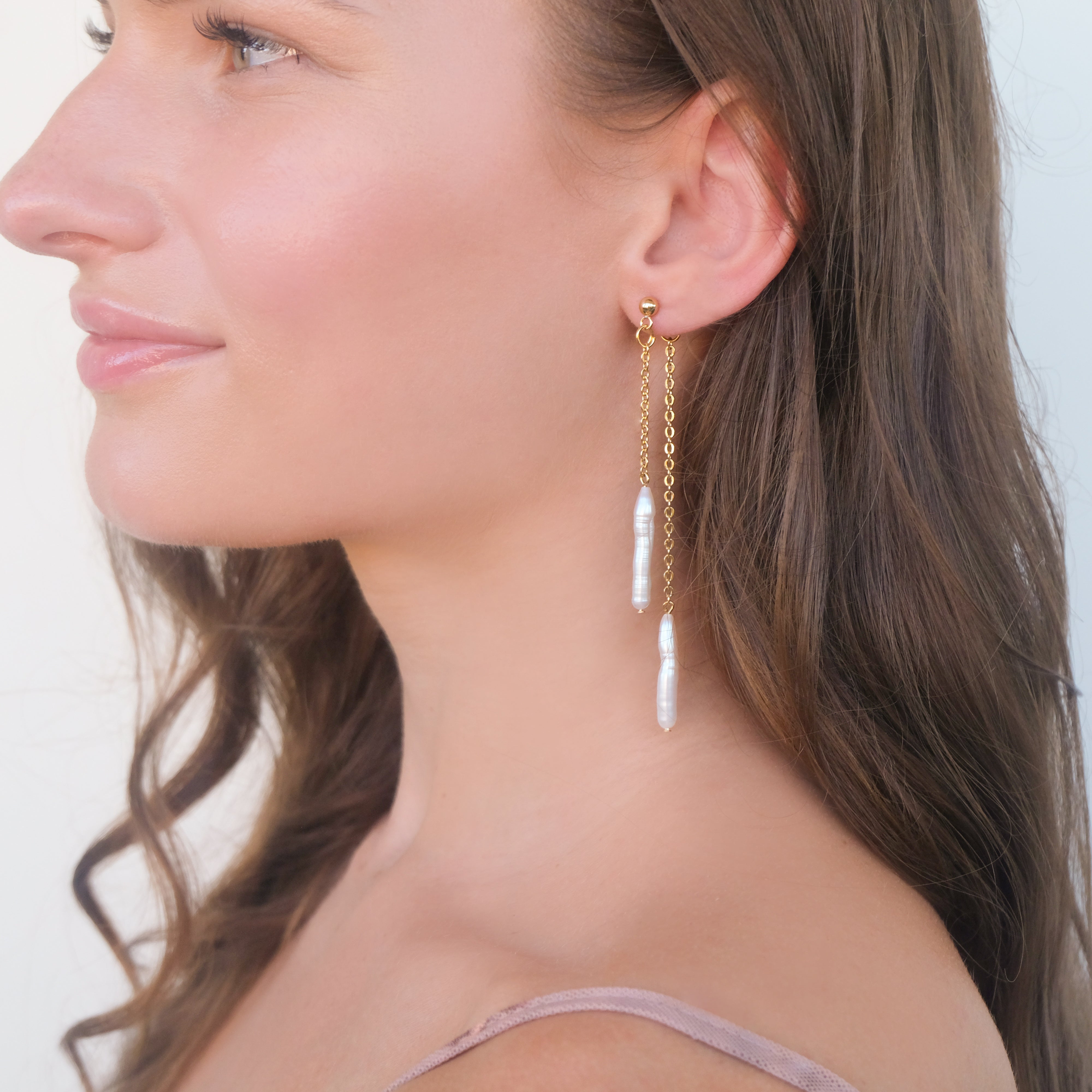 Note: Pearls are baroque- naturally irregularly shaped and may not exactly match as a pair. Expect differences in shape, texture, coloration and size.